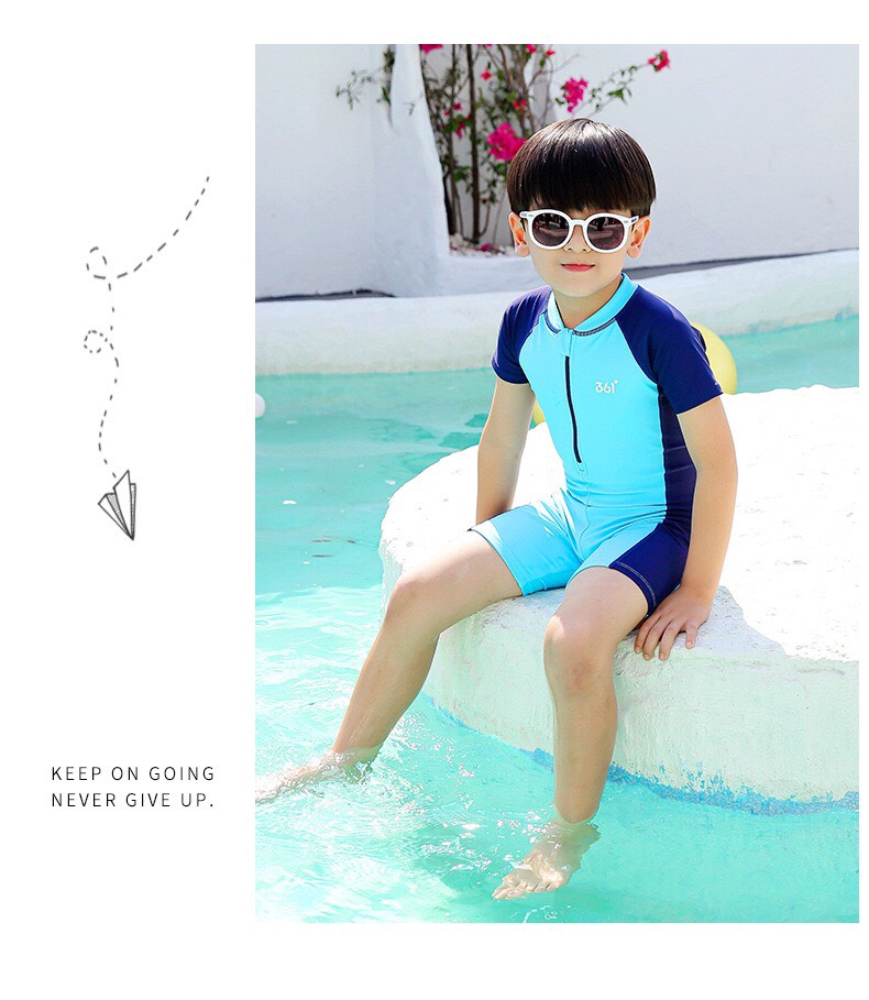 Bộ bơi bé trai cộc liền, màu xanh, tay than 361 (SLY195015)