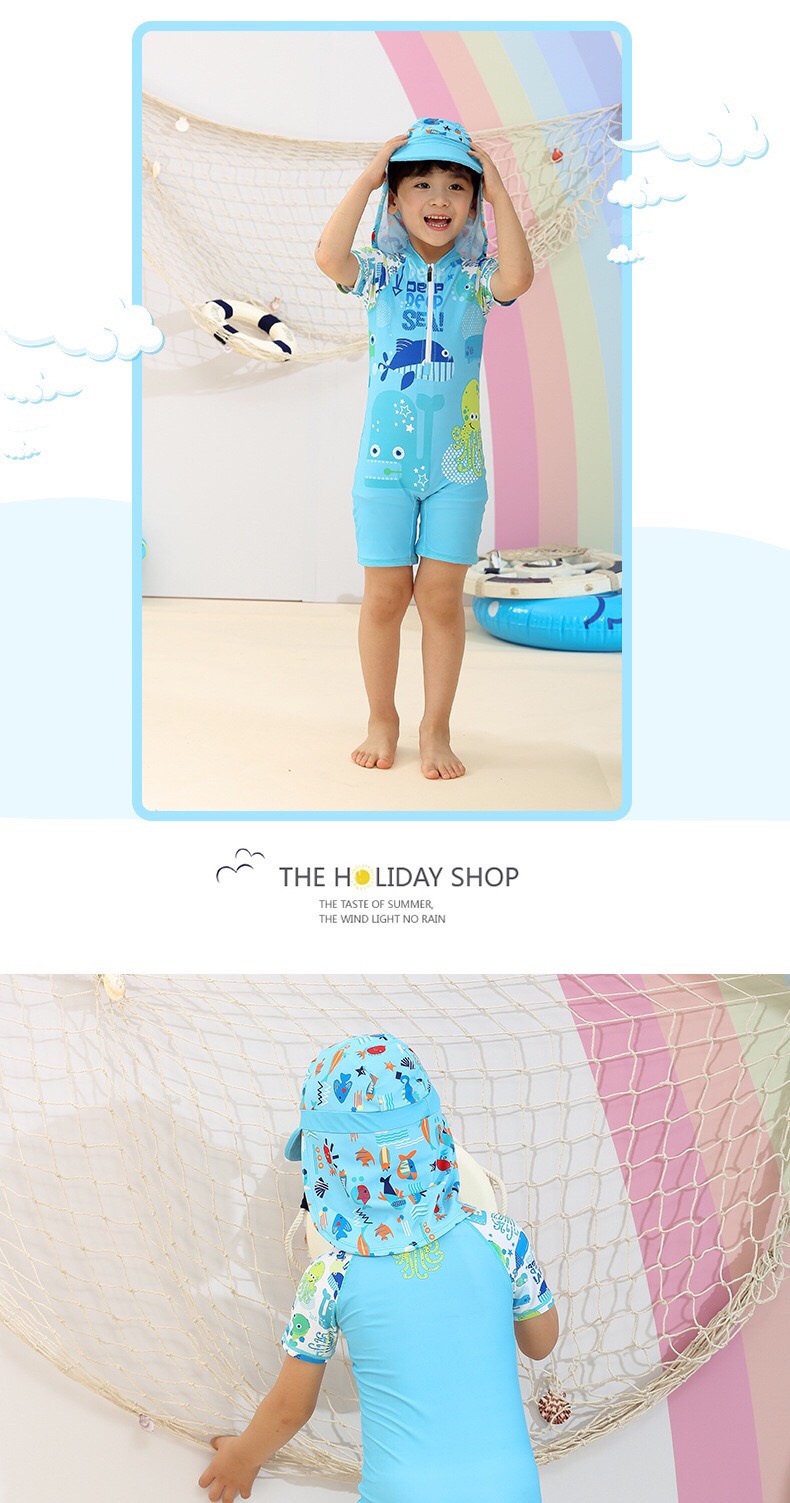 Bộ bơi bé trai cộc liền xanh Sea hình cá 361 (SLY195001)