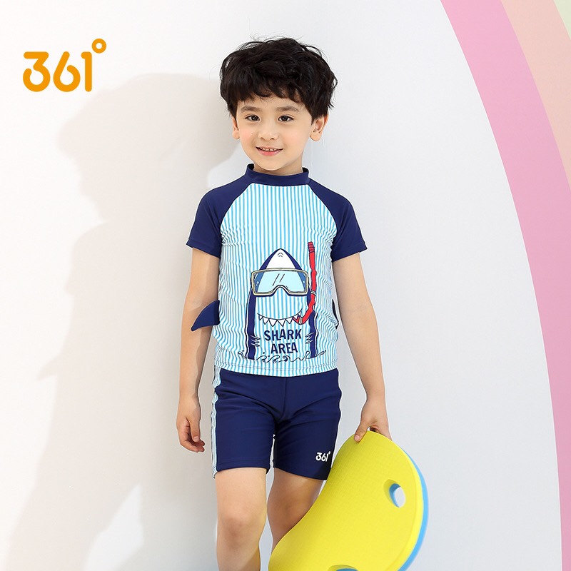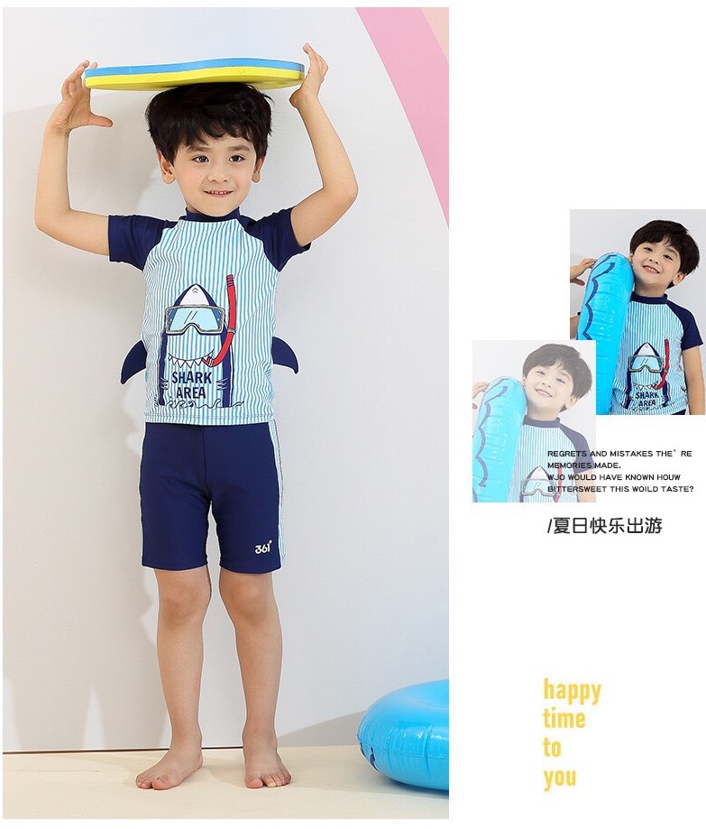Bộ bơi bé trai cộc rời xanh kẻ Shark Area 361 (SLY195032)