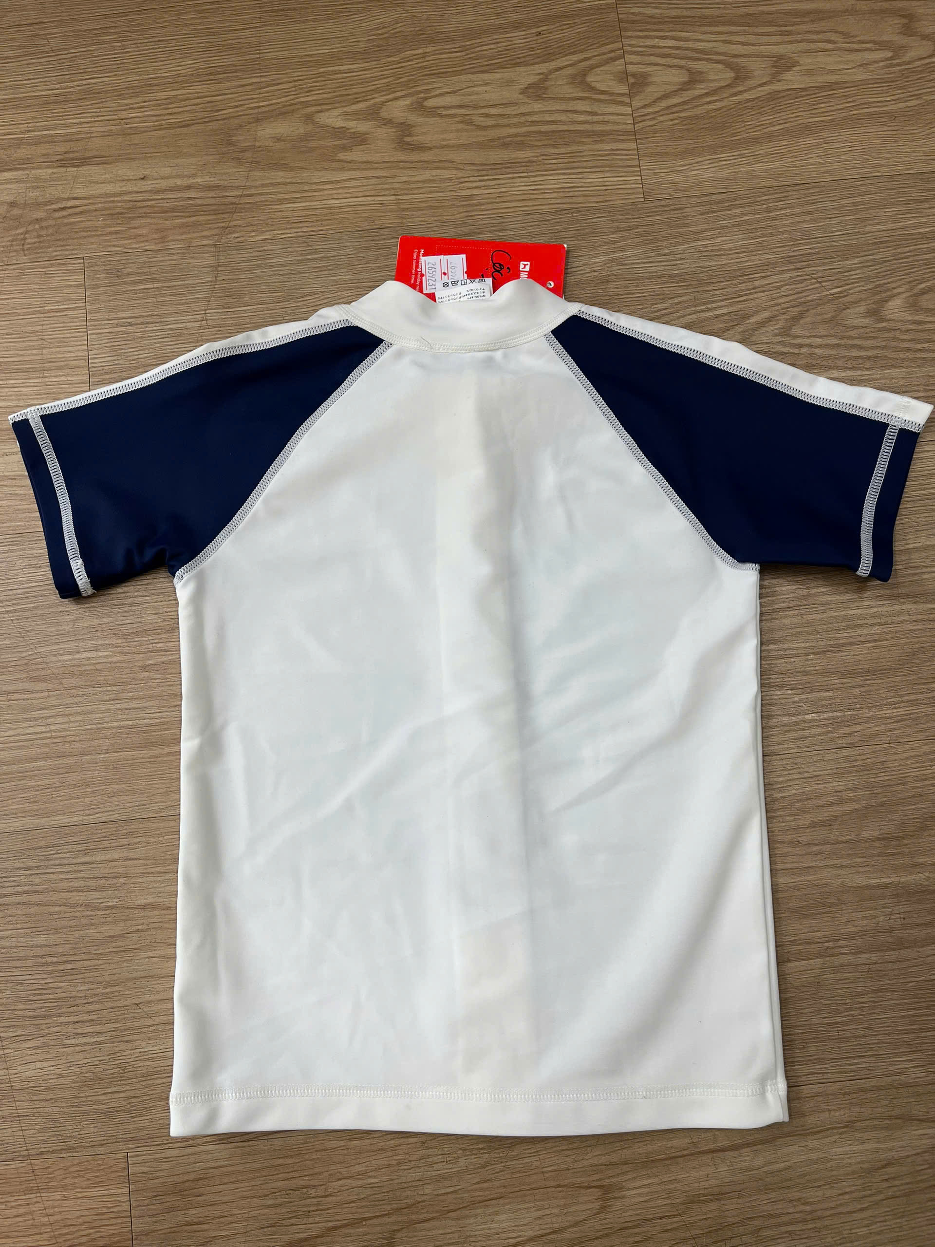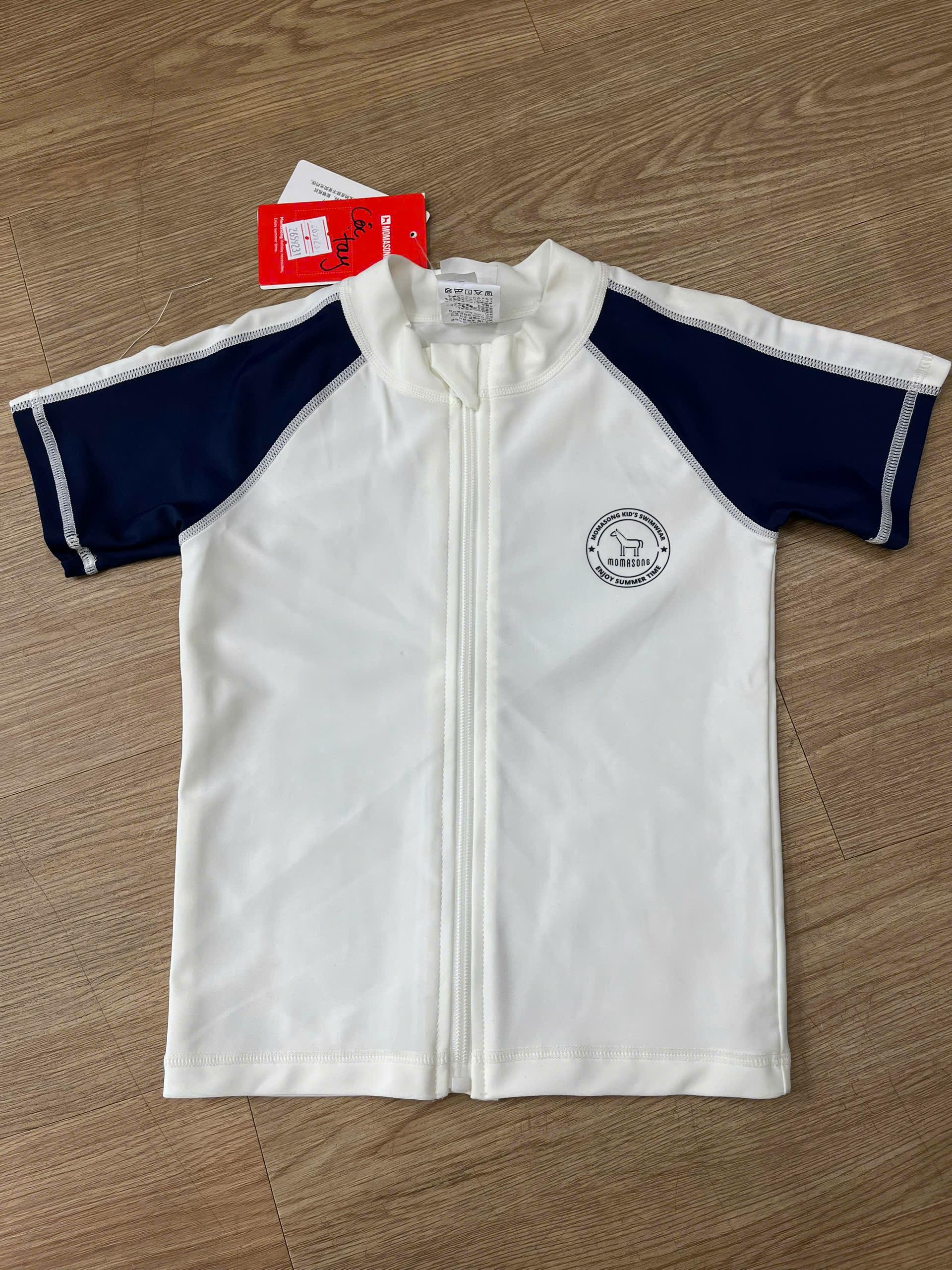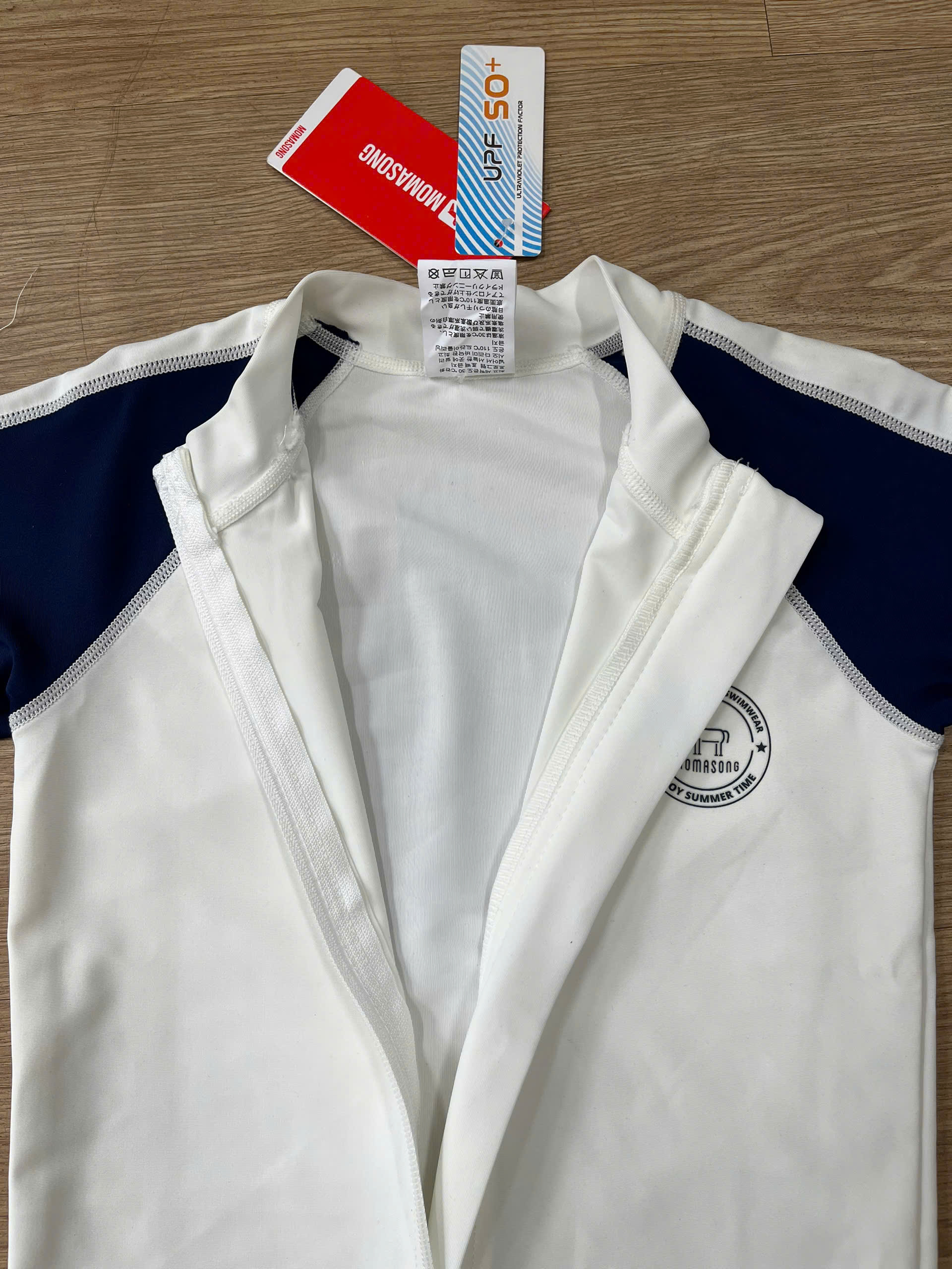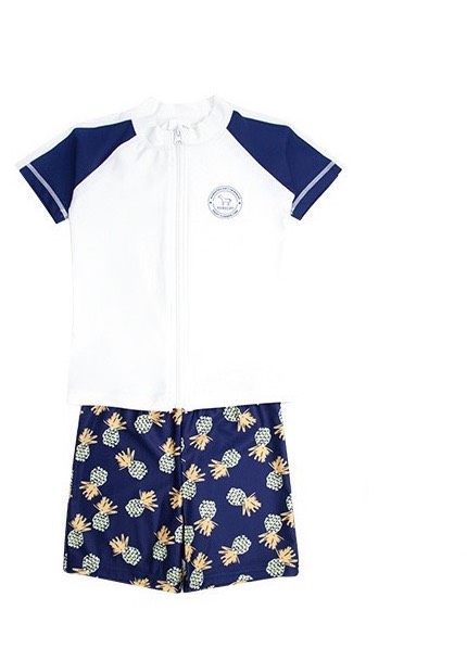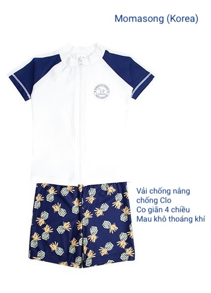 Bộ bơi bé trai cộc tay, màu trắng, kéo khoá, vải chống nắng, Momasong (Korea)
