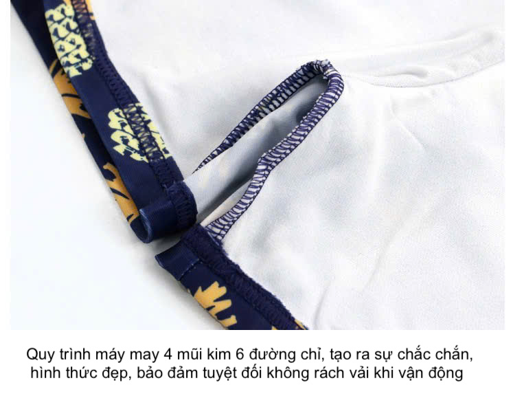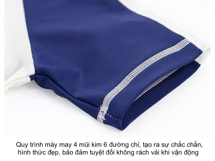- Quy trình máy may 4 mũi kim 6 đường chỉ, tạo ra sự chắc chắn, hình thức đẹp, bảo đảm tuyệt đối không rách vải khi vận động