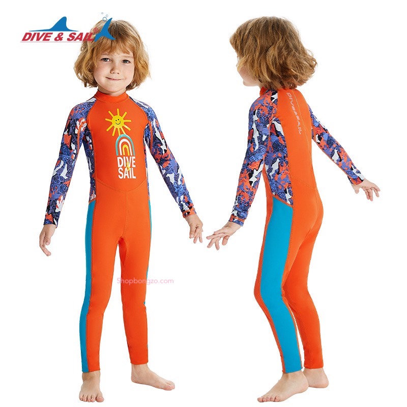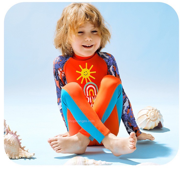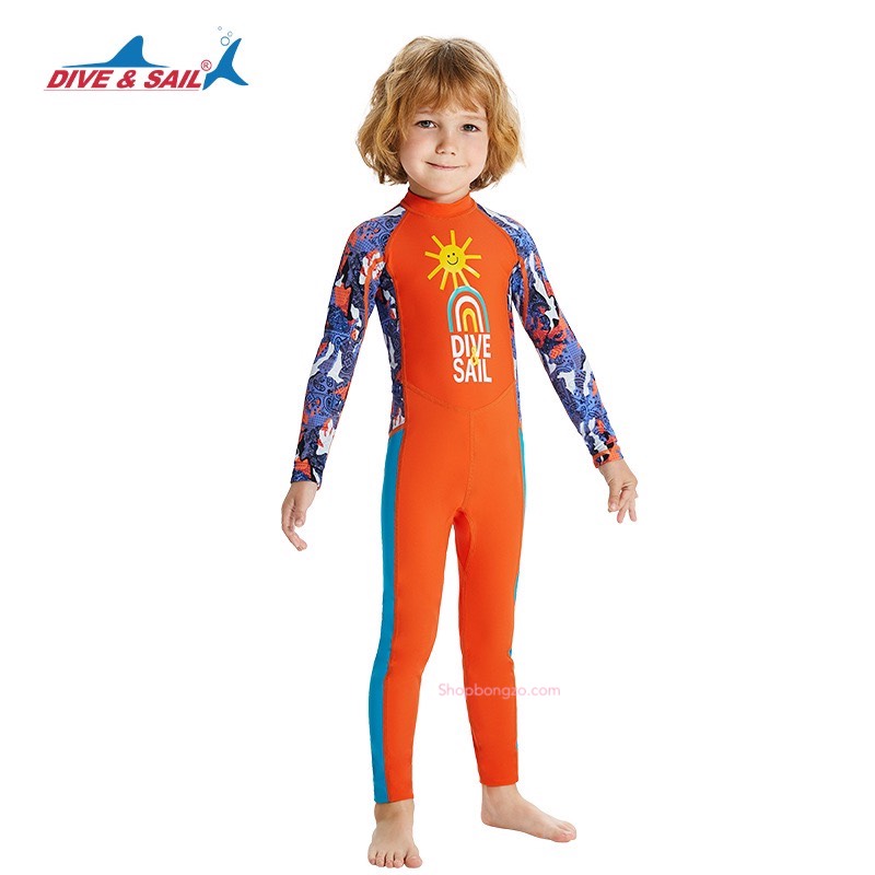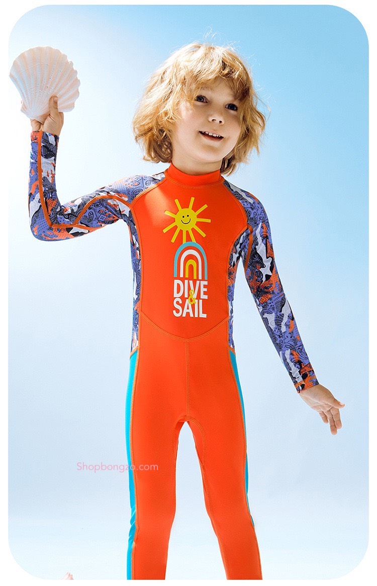 Bộ bơi bé trai dài liền, màu cam, hình mặt trời, Dive&Sail M153189K