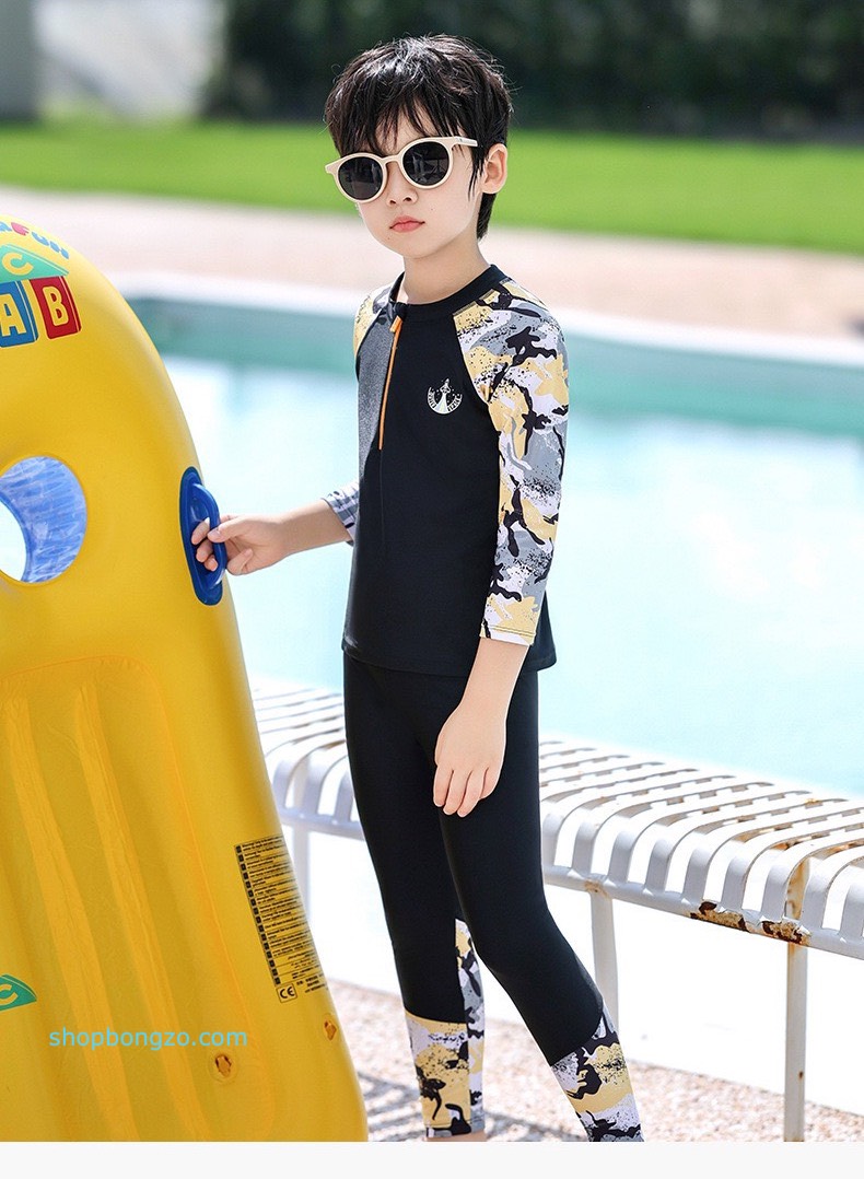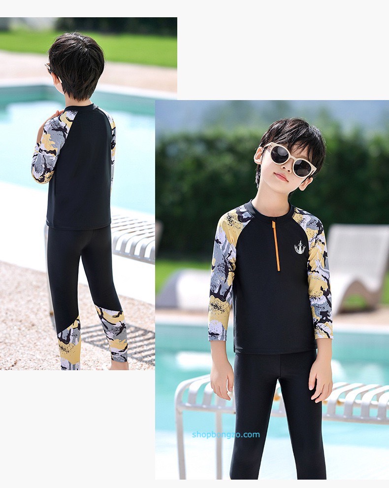 Bộ bơi bé trai dài rời, màu đen Space, vải cao cấp chống nắng