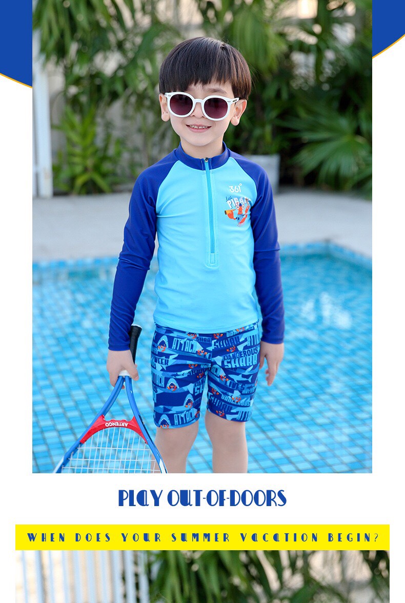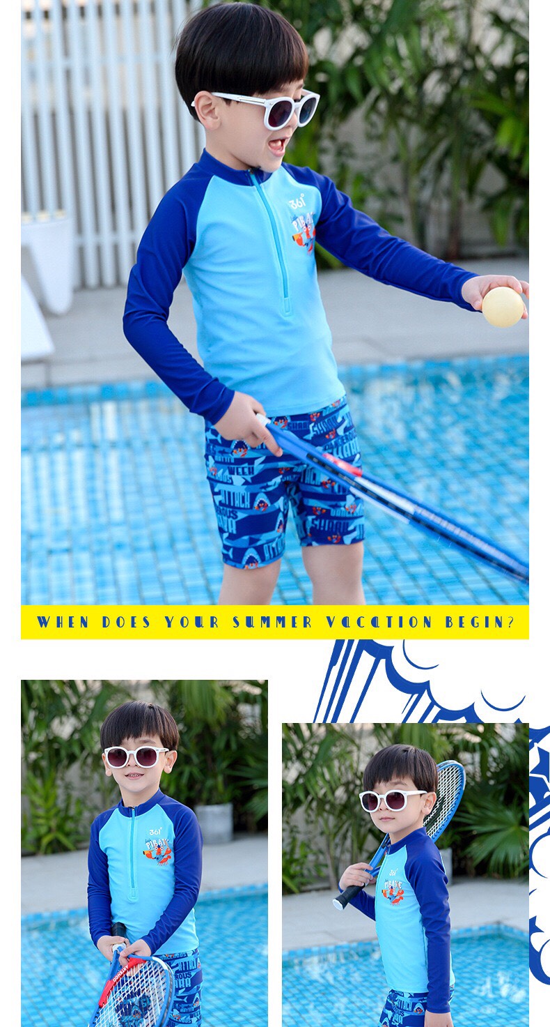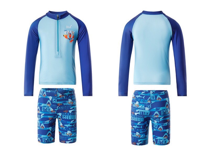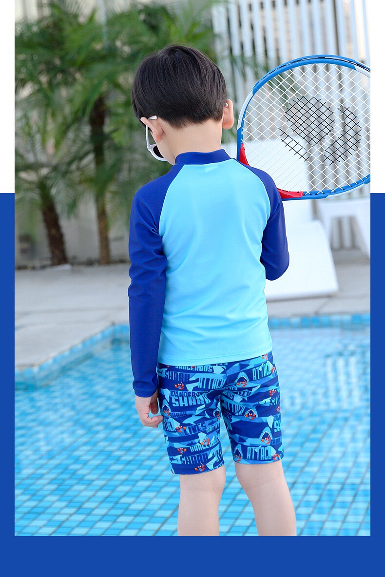 Bộ bơi bé trai chống nắng UPF50+, màu xanh, dài tay, Paradise, YUKE