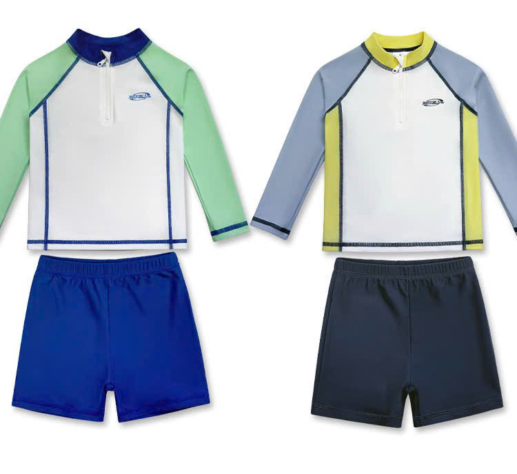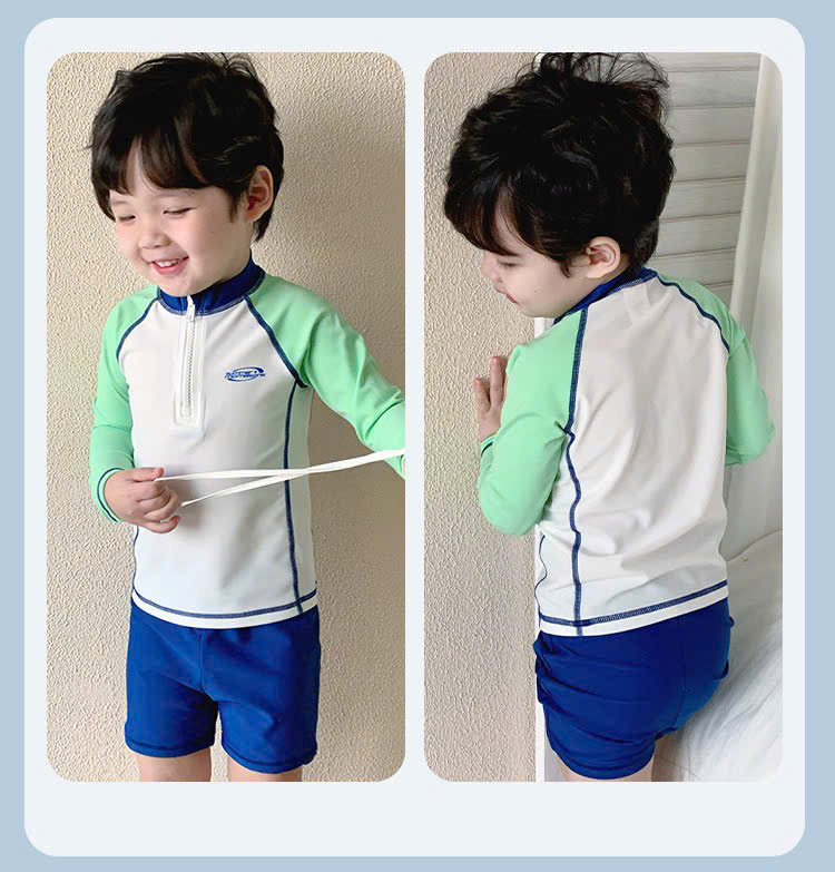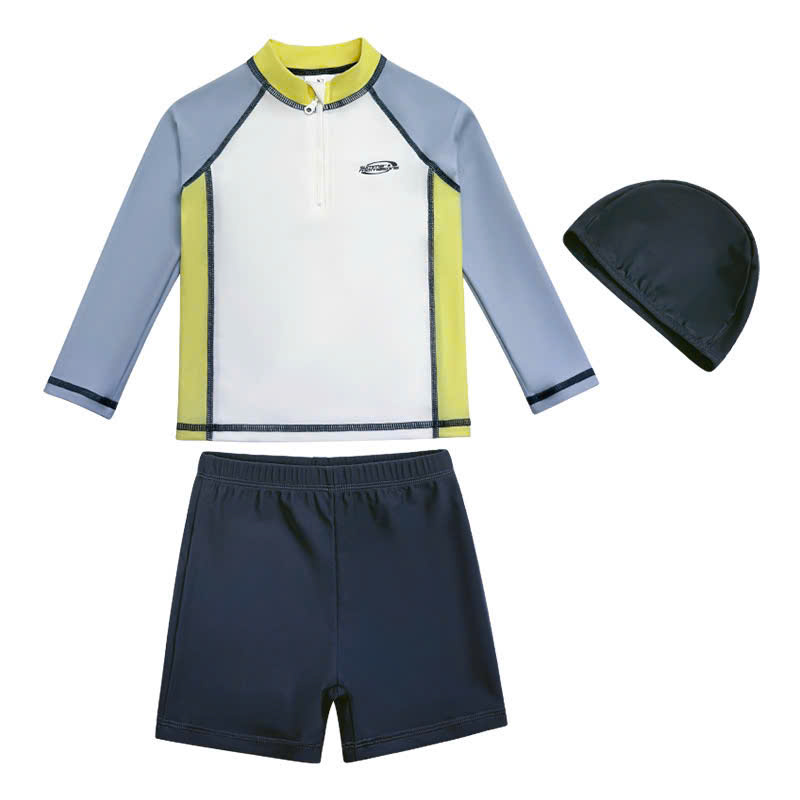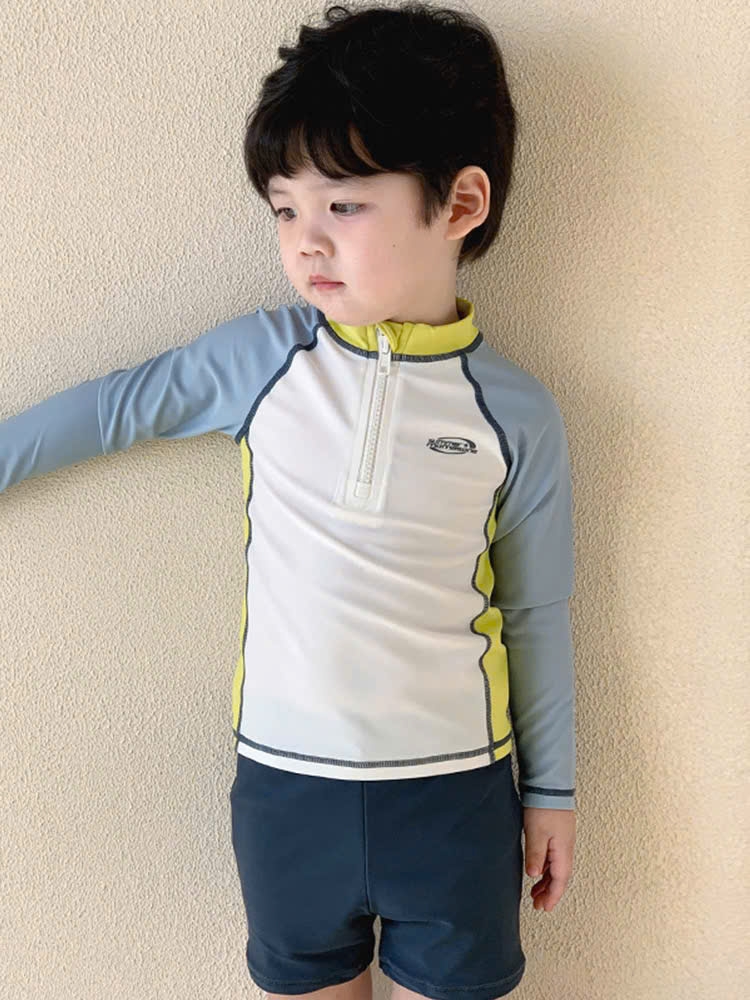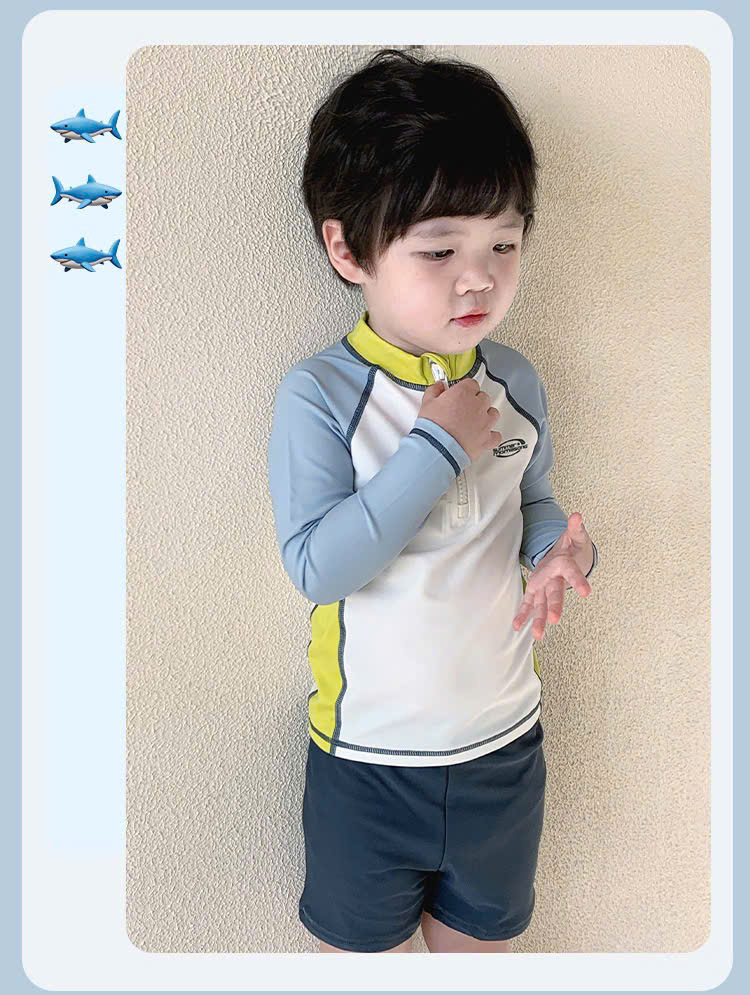 Bộ bơi bé trai dài tay, trắng tay xám, vải chống nắng UPF50+, Momasong(Korea)