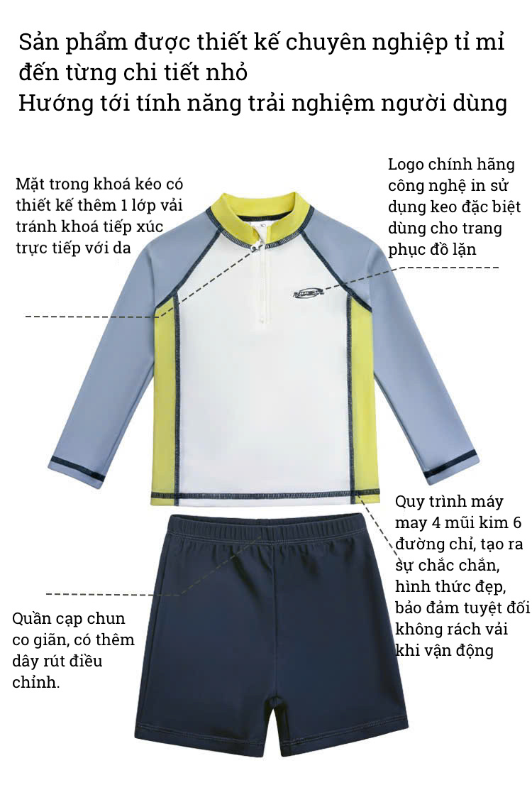 + Công nghệ in sử dụng keo đặc biệt dùng cho trang phục đồ lặn, rất chắc chắn, không phai màu và chống rách tuyệt đối
