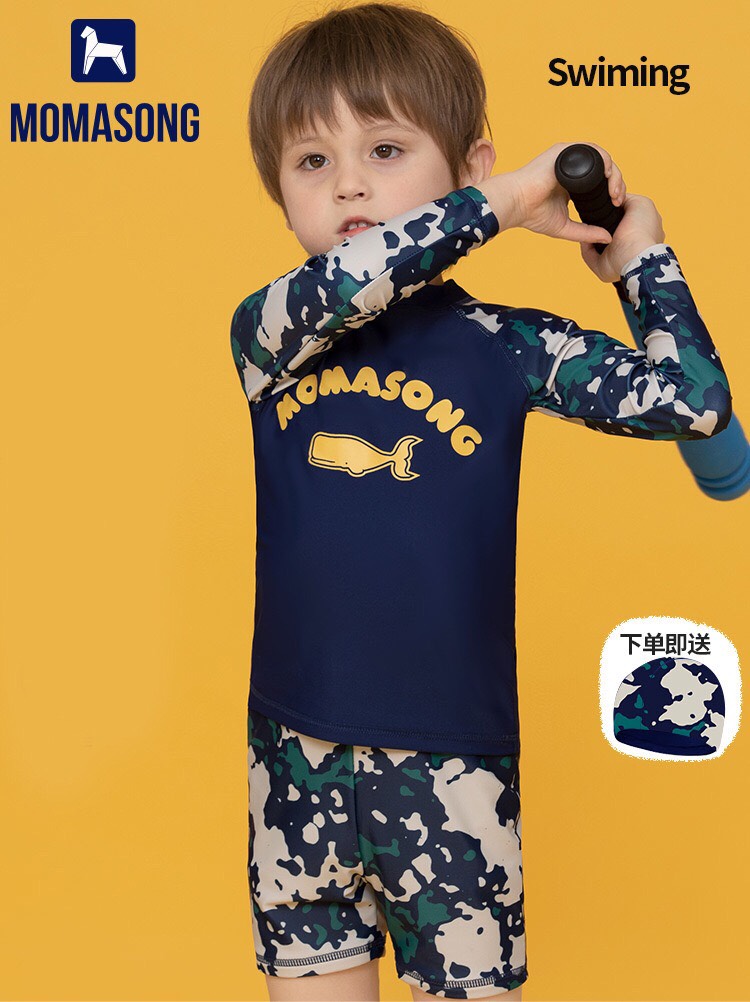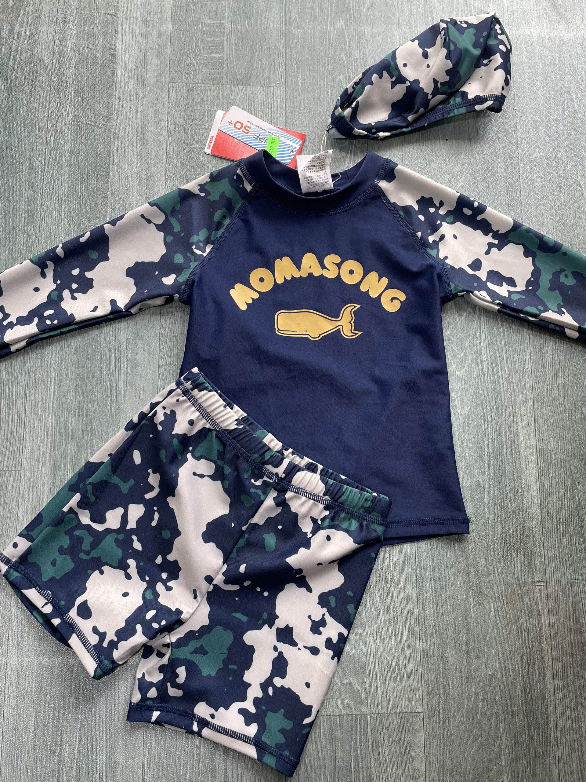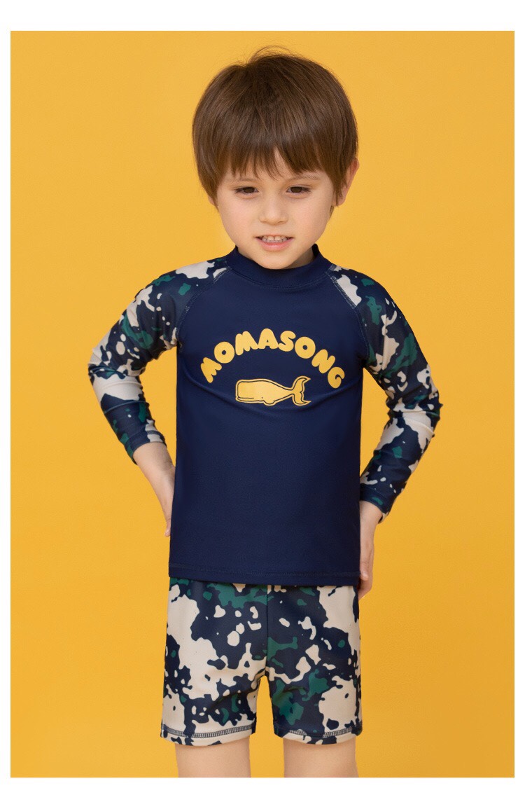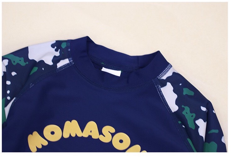 Bộ bơi bé trai dài tay xanh than rằn ri, vải chống nắng UPF50++, kháng Clo, Momasong (Korea)