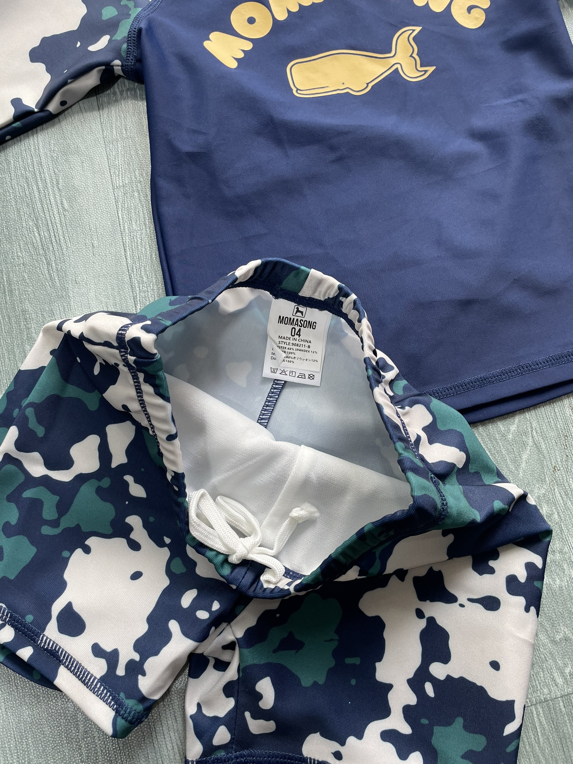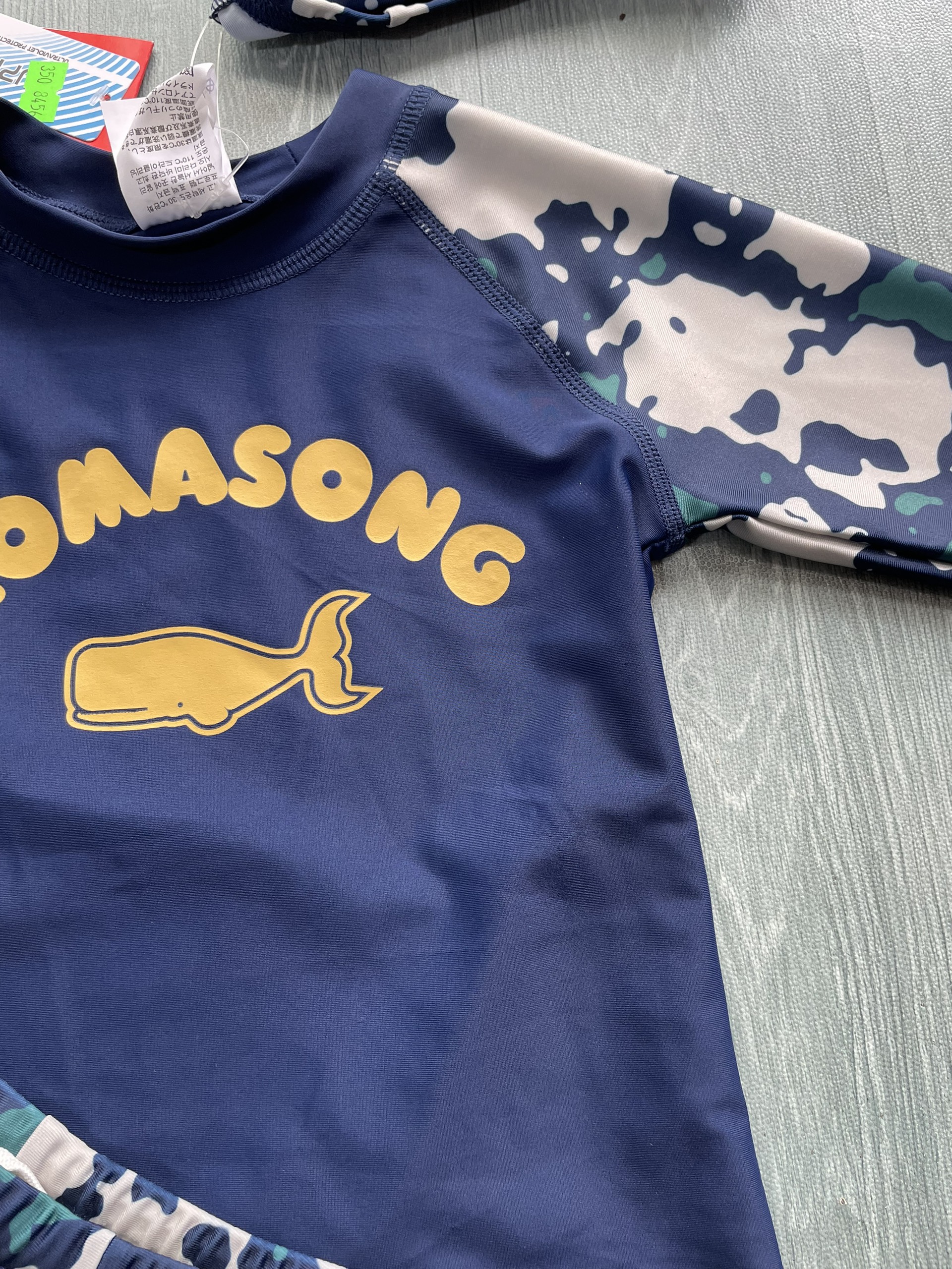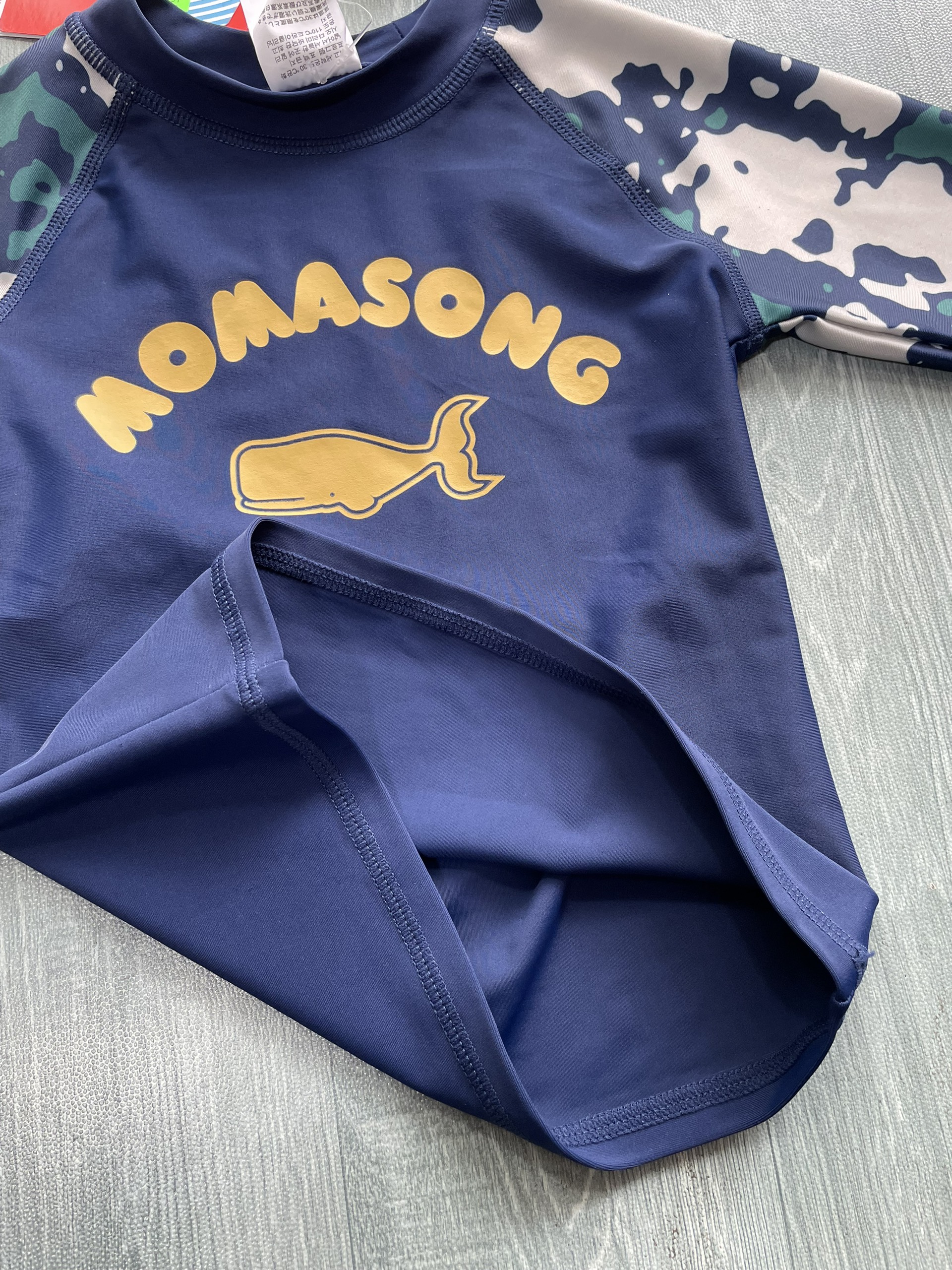 Bộ bơi bé trai dài tay xanh than rằn ri, vải chống nắng UPF50++, kháng Clo, Momasong (Korea)