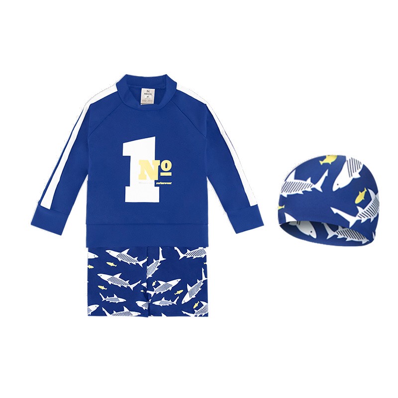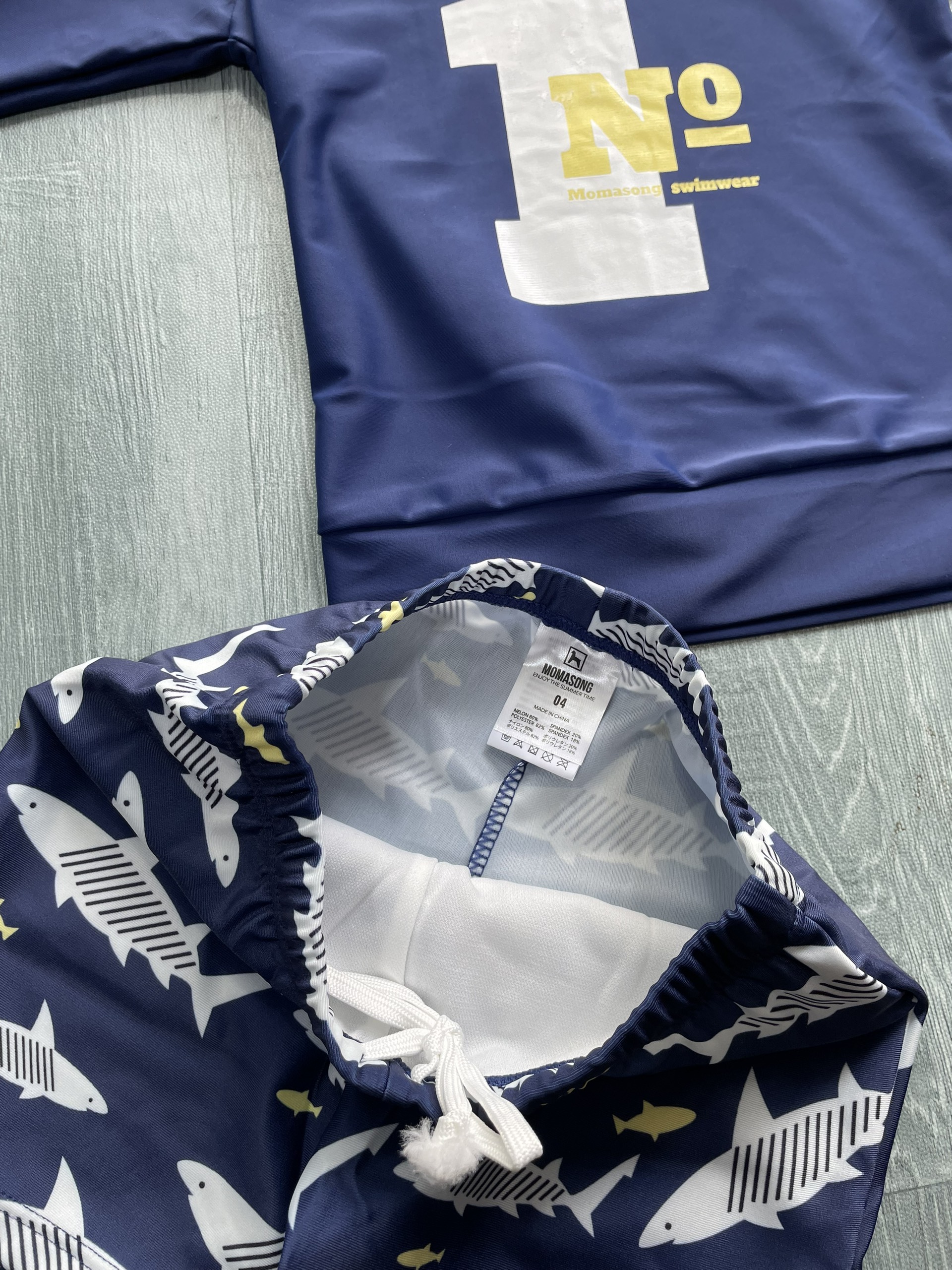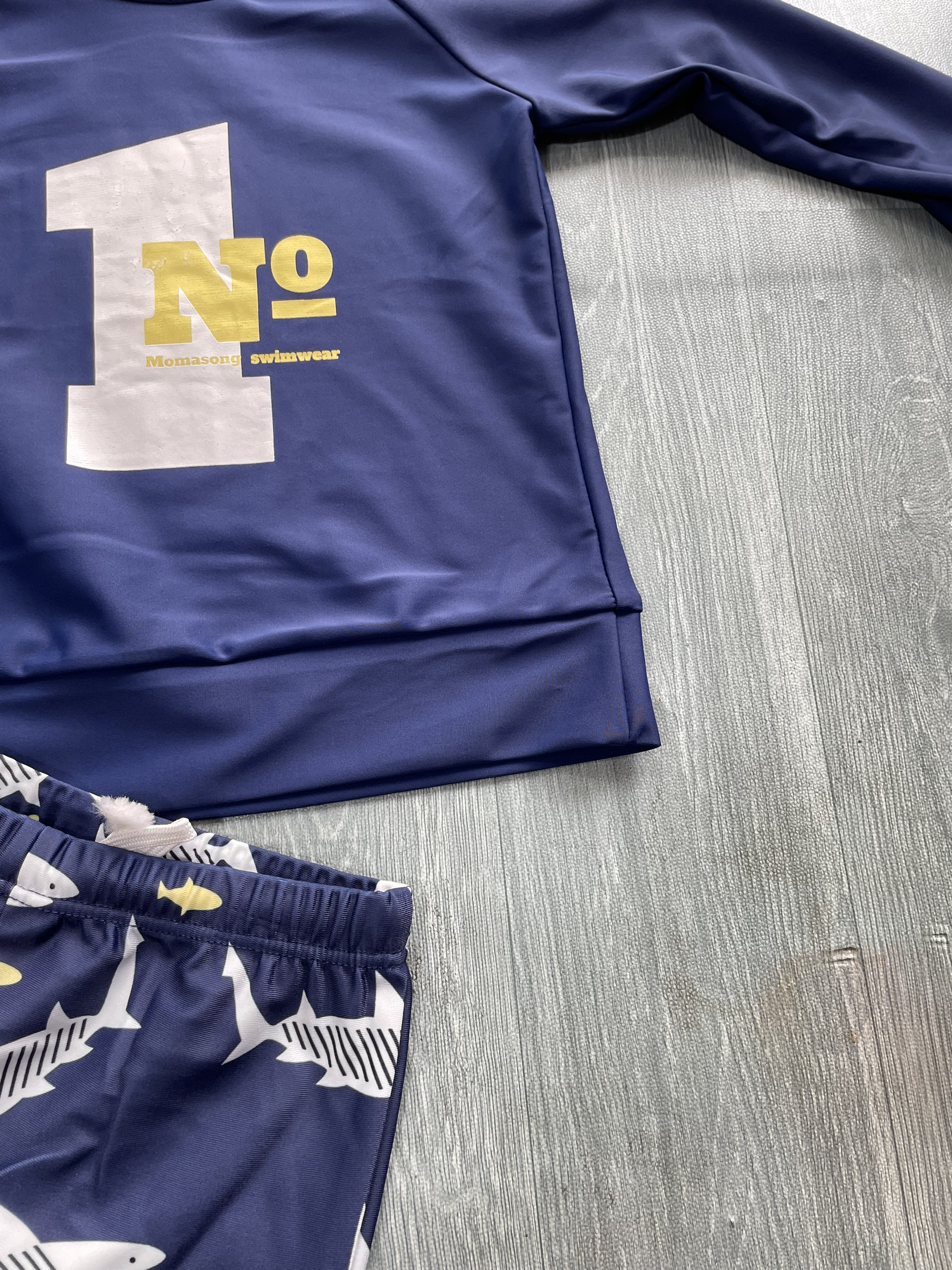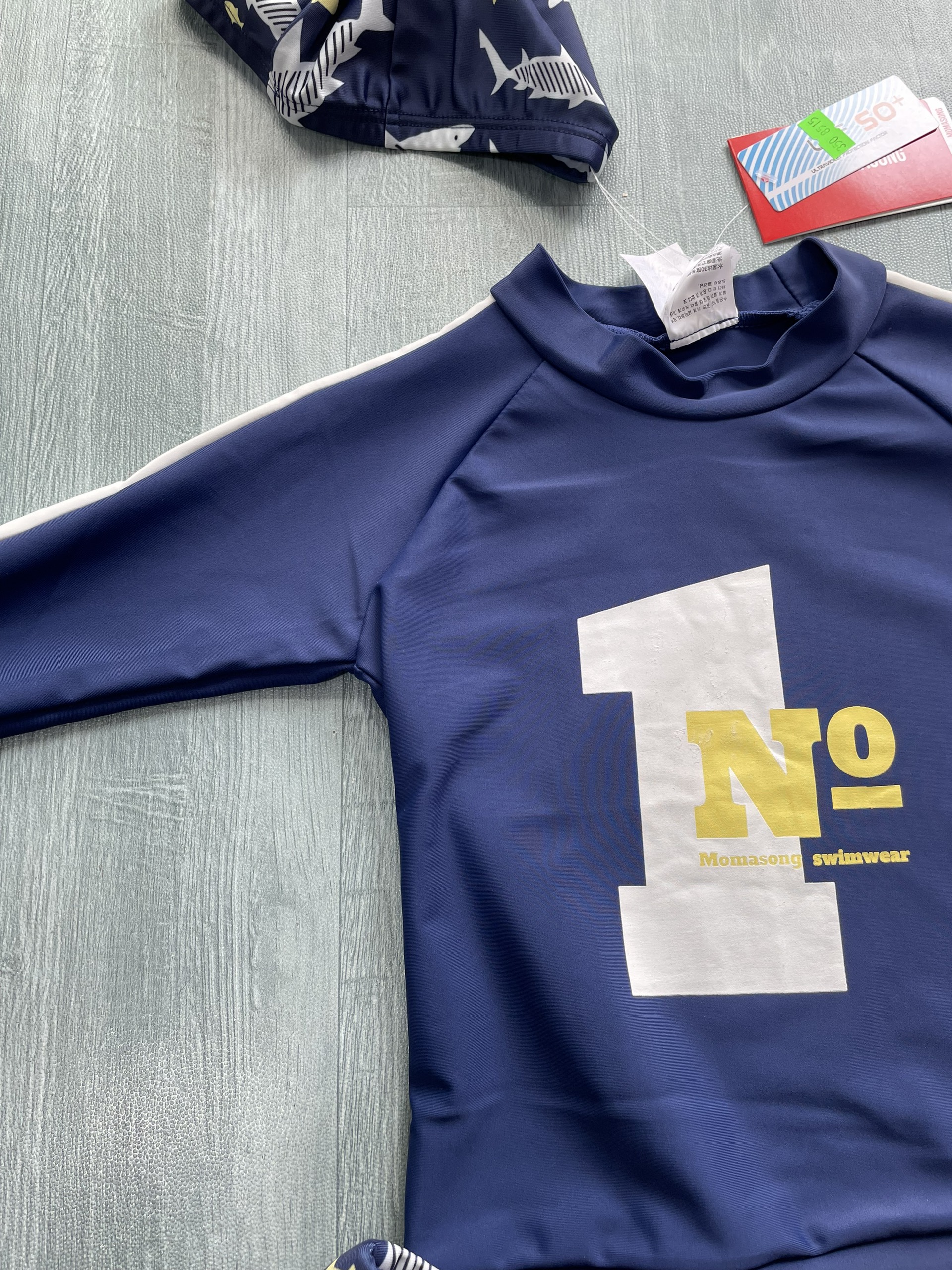 Bộ bơi bé trai dài tay Xanh than, Số 1, quần cộc rời, Momasong (Korea)
