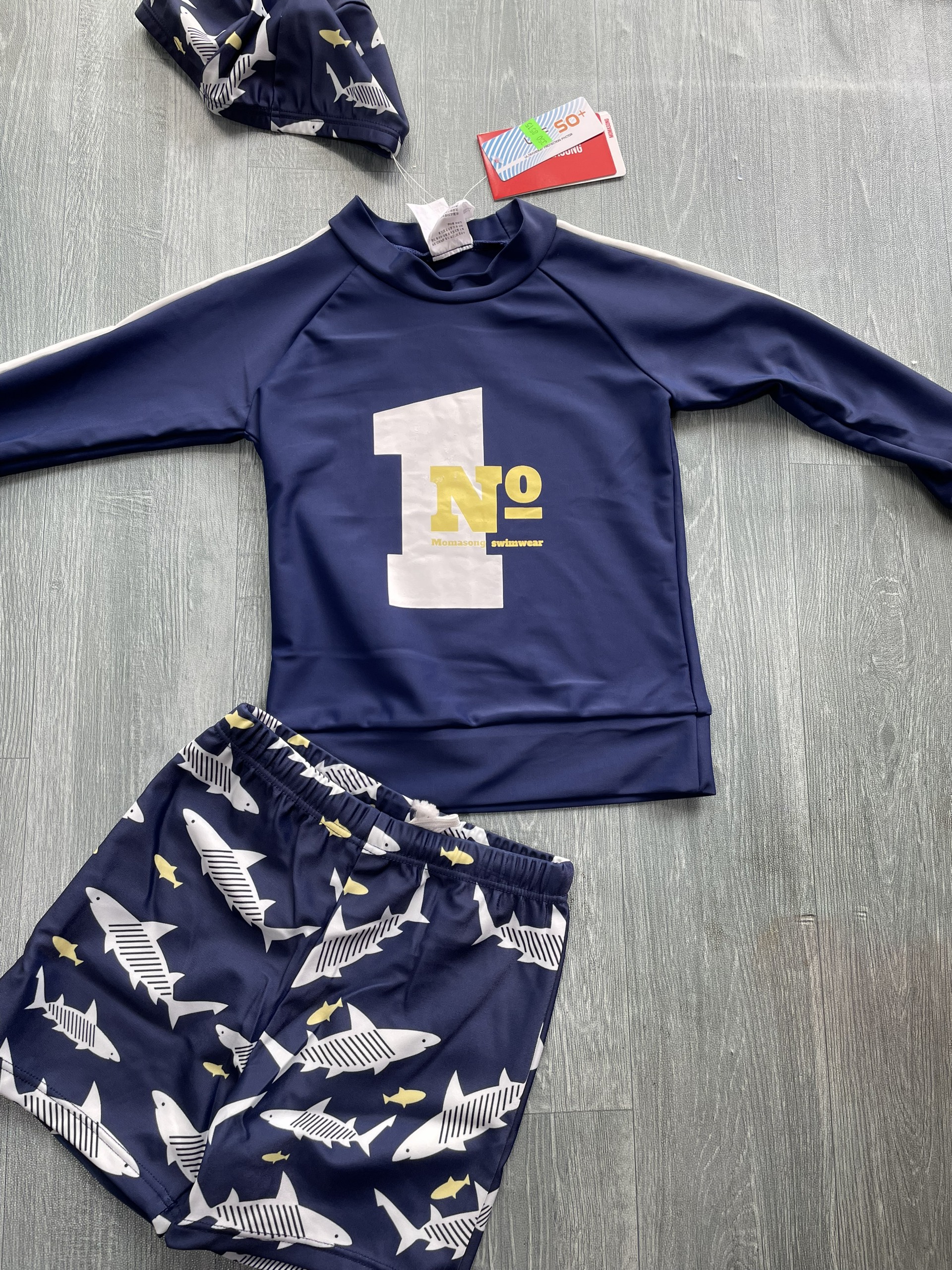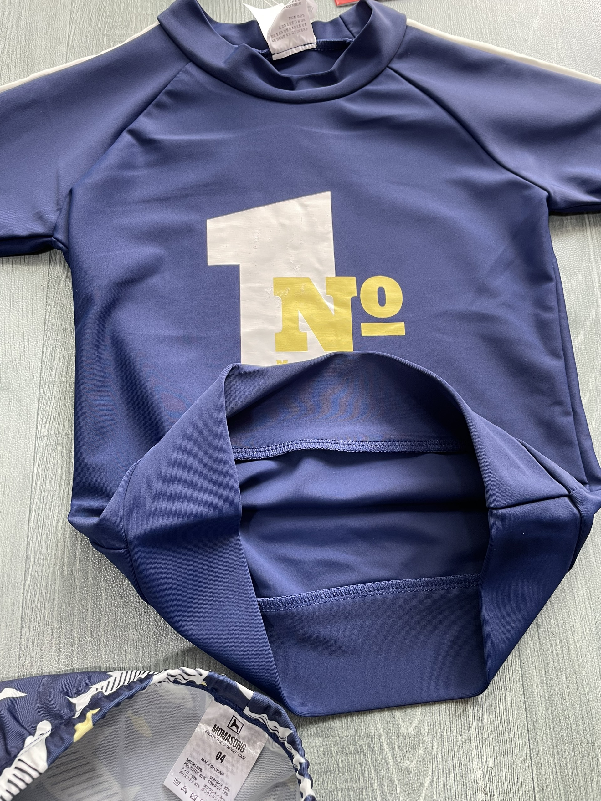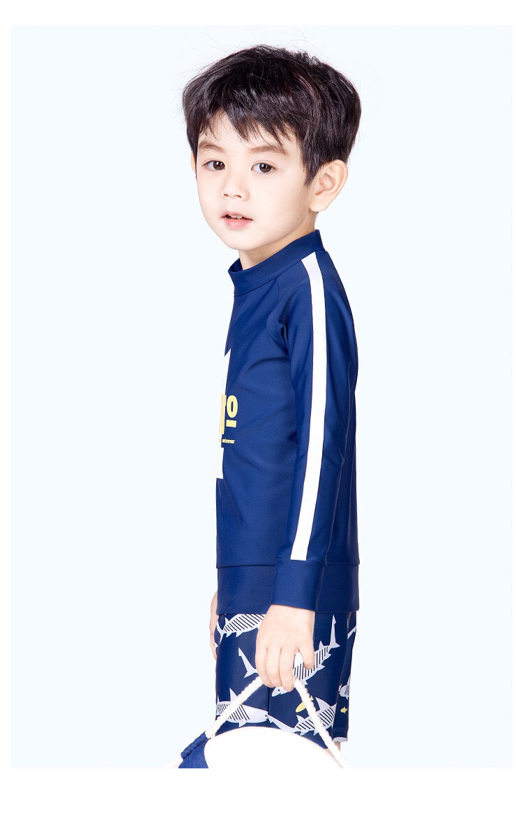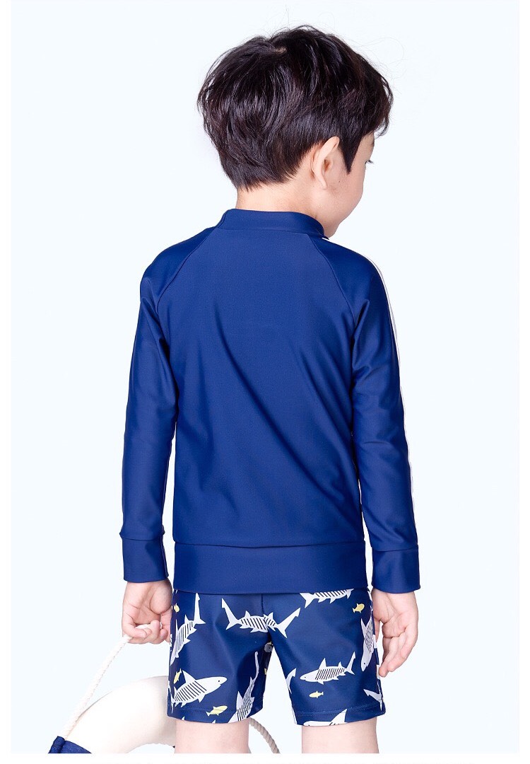Bộ bơi bé trai dài tay Xanh than, Số 1, quần cộc rời, Momasong (Korea)