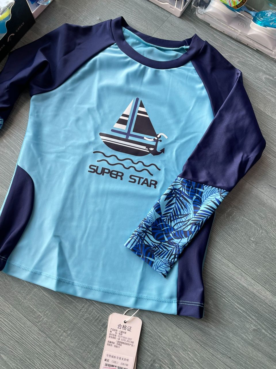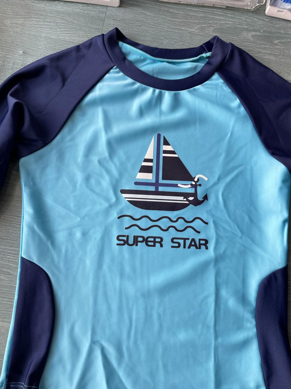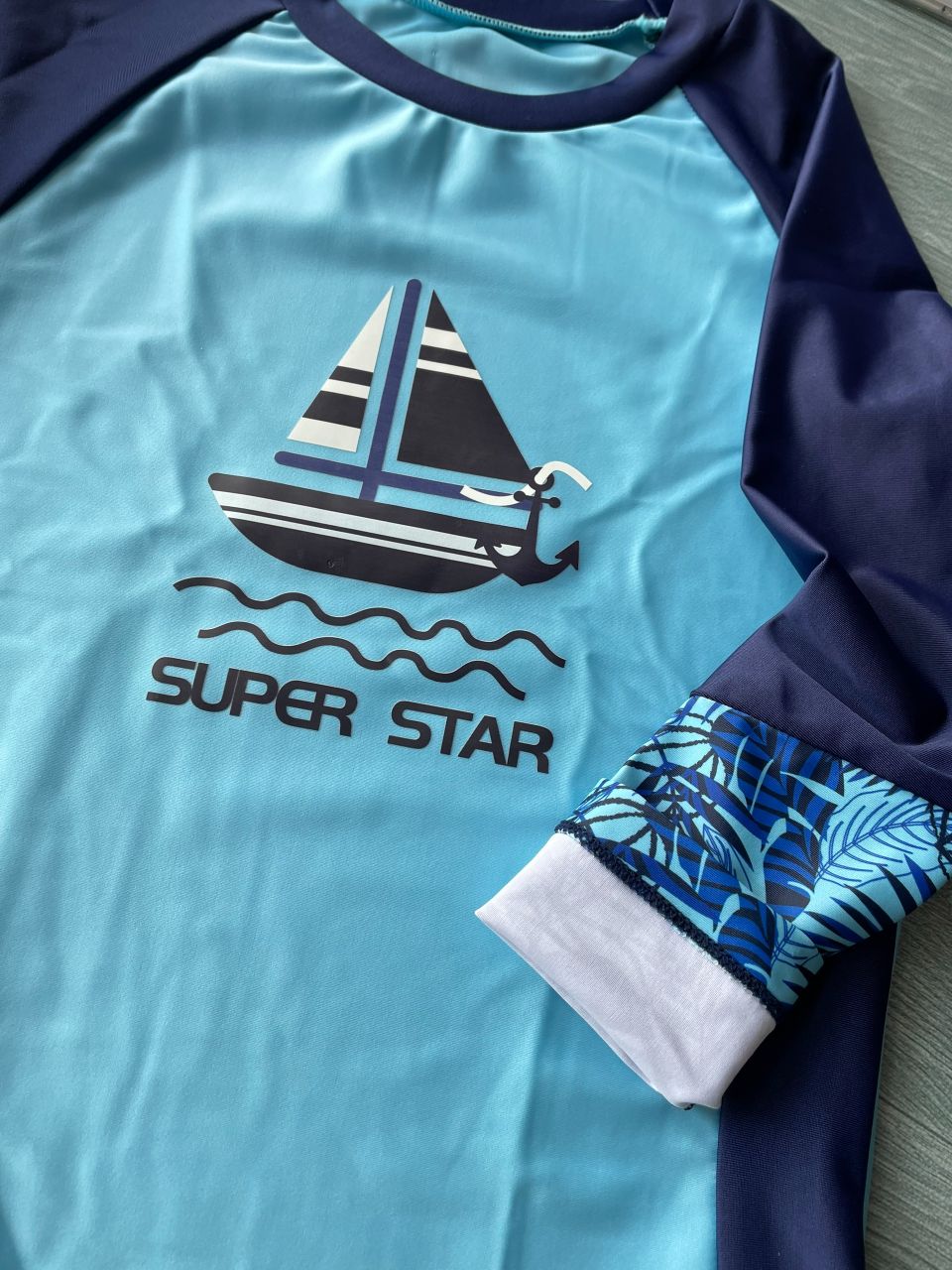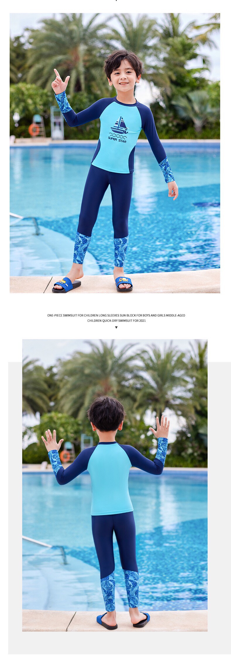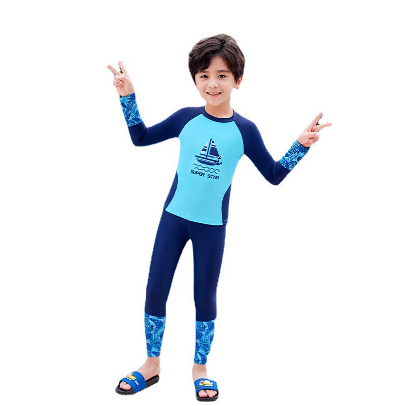 Bộ bơi bé trai dài xanh, tay than, quần dài rời, Super Star, 32015