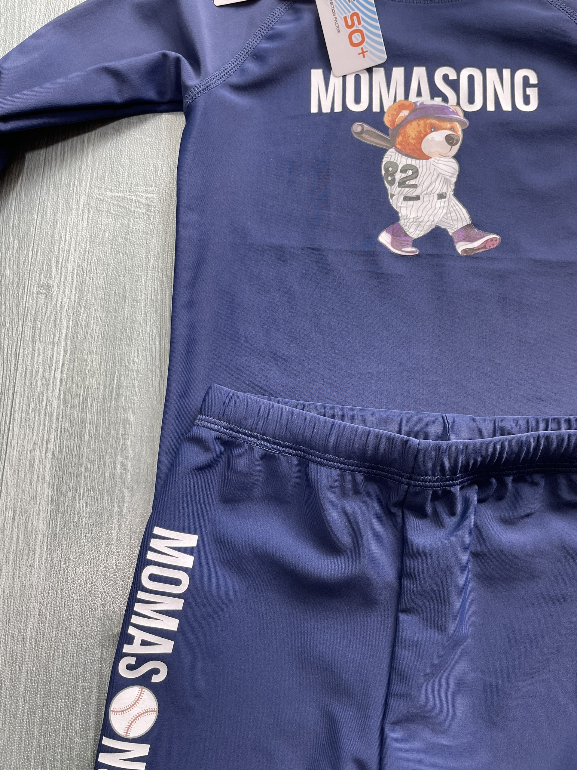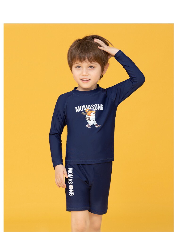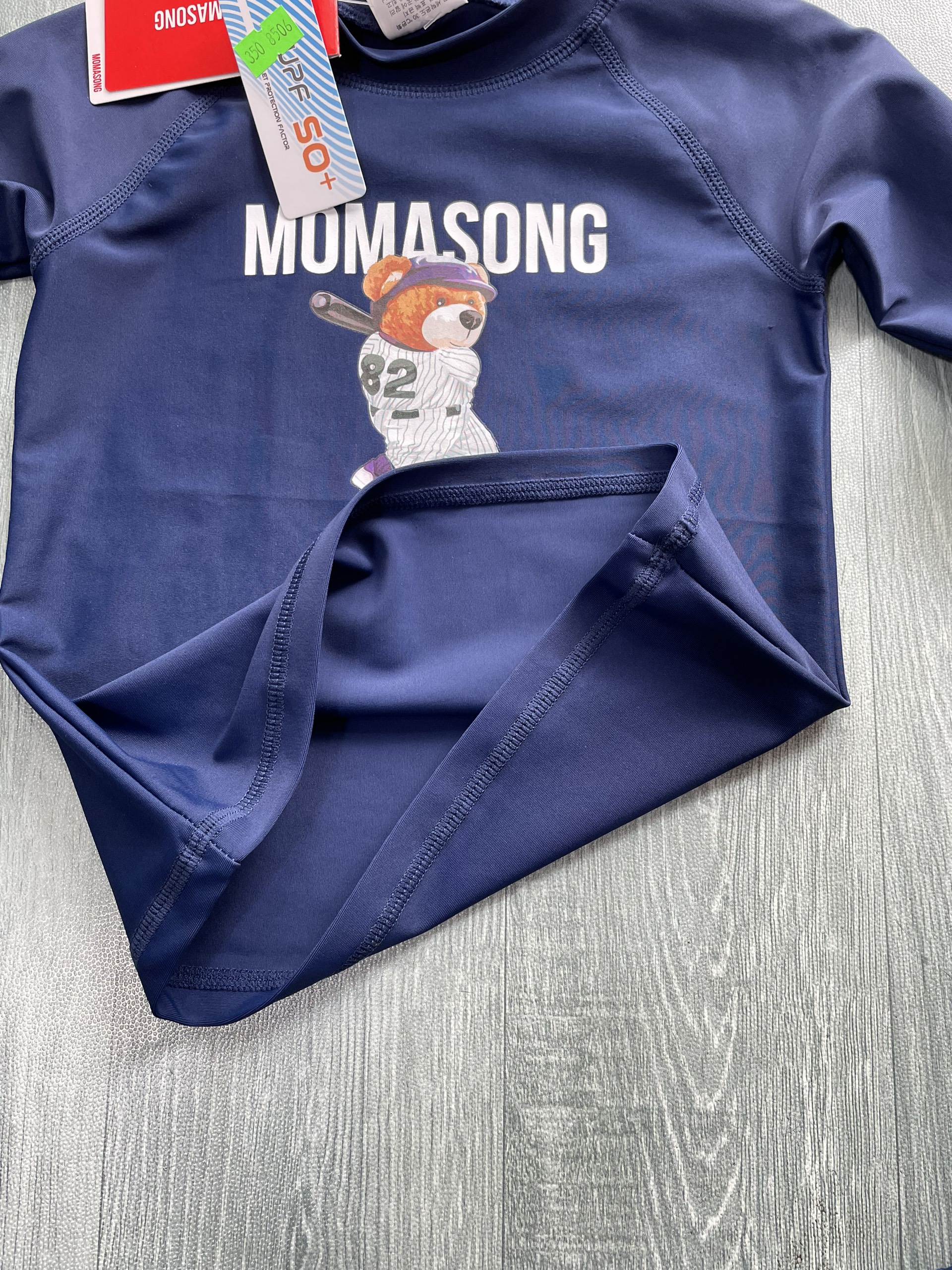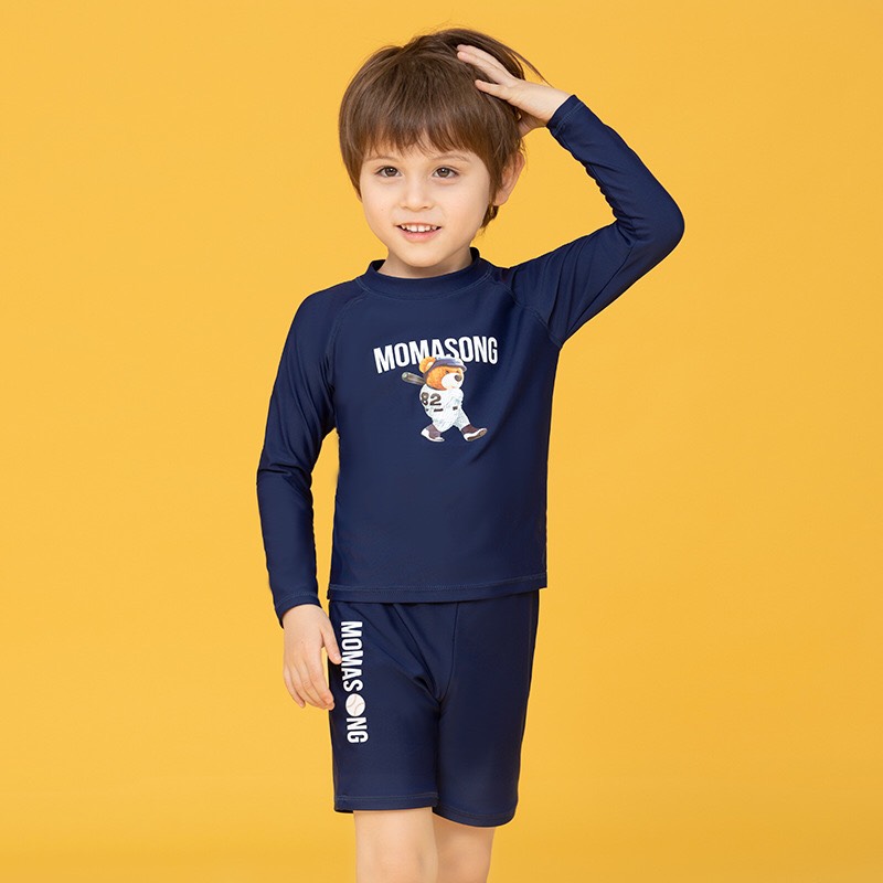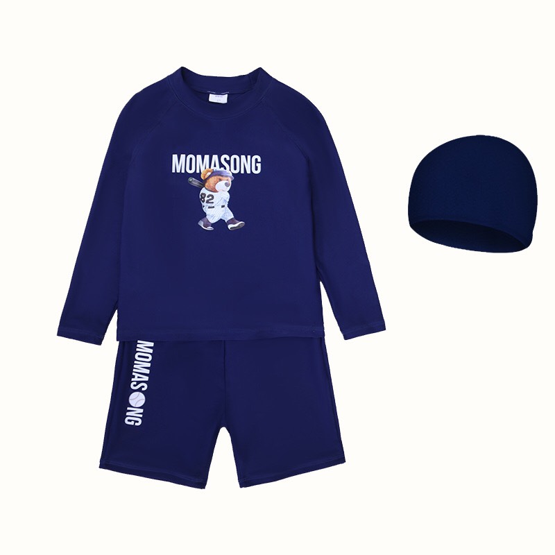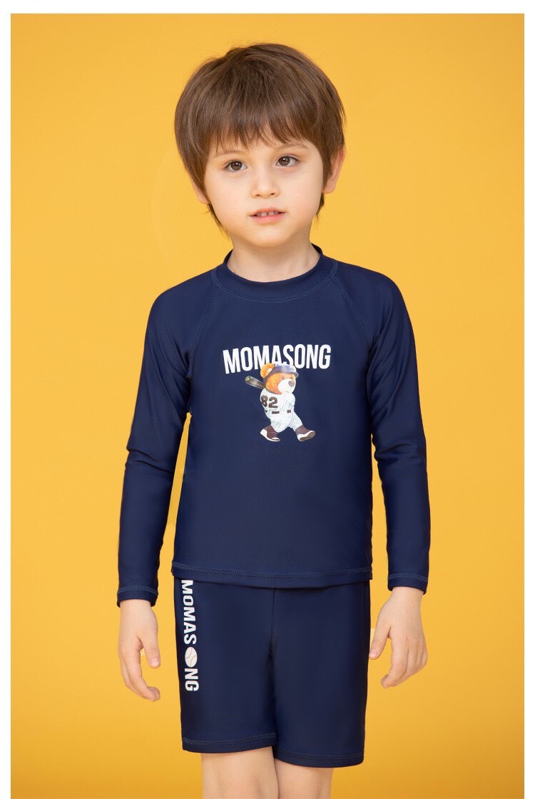 Bộ bơi bé trai dài Xanh Than, hình gấu, quần cộc rời, Momasong (Korea)