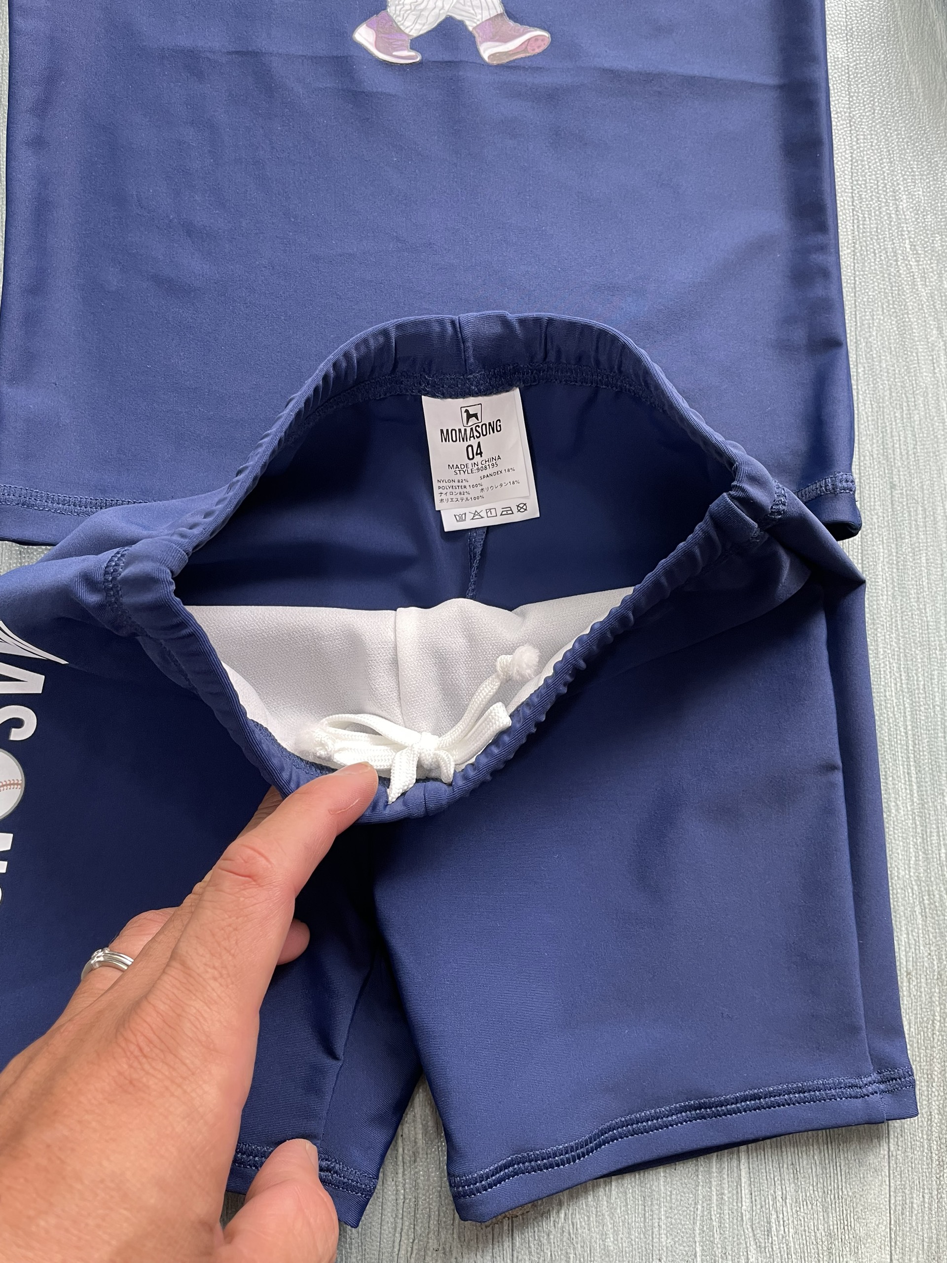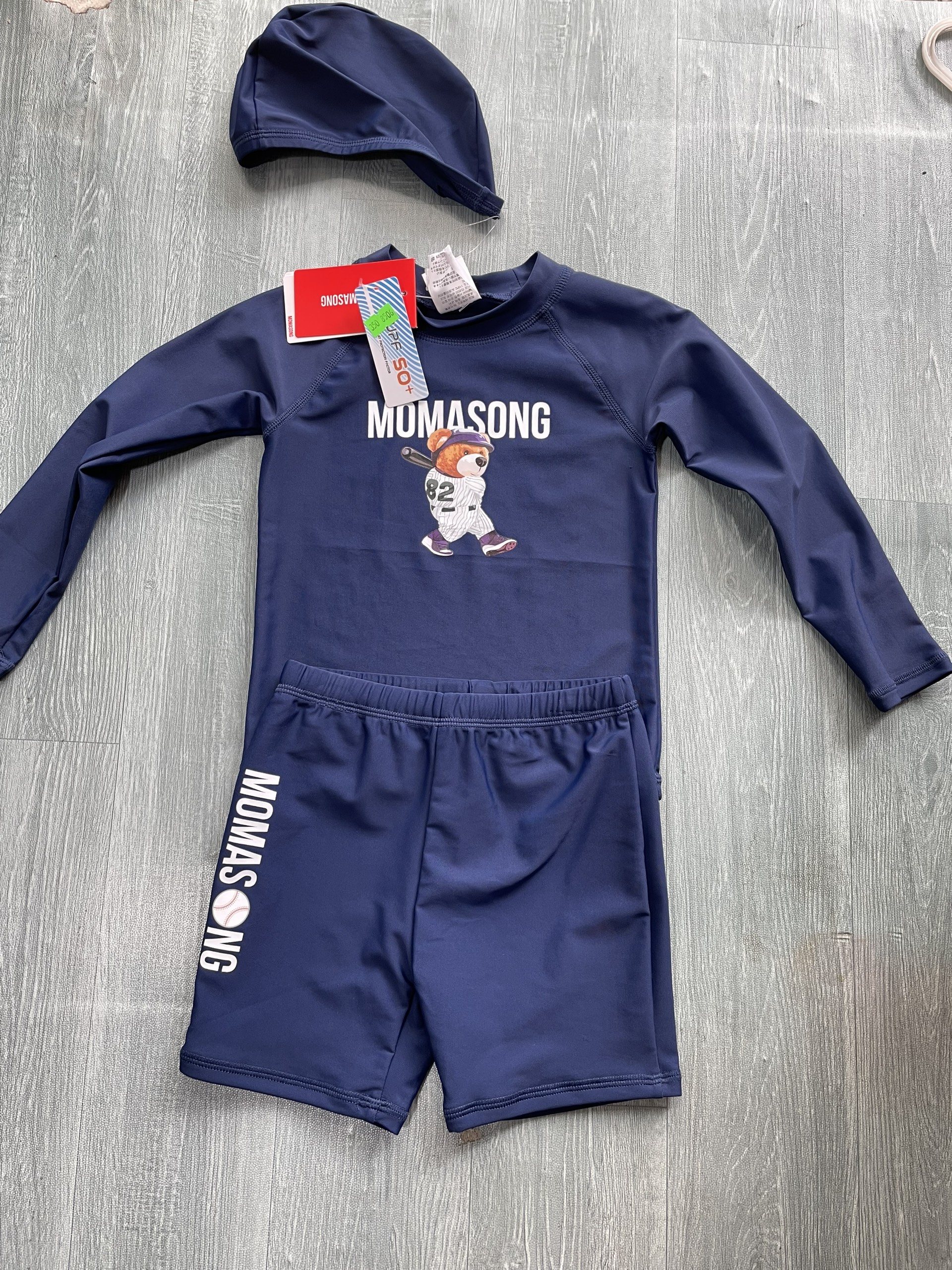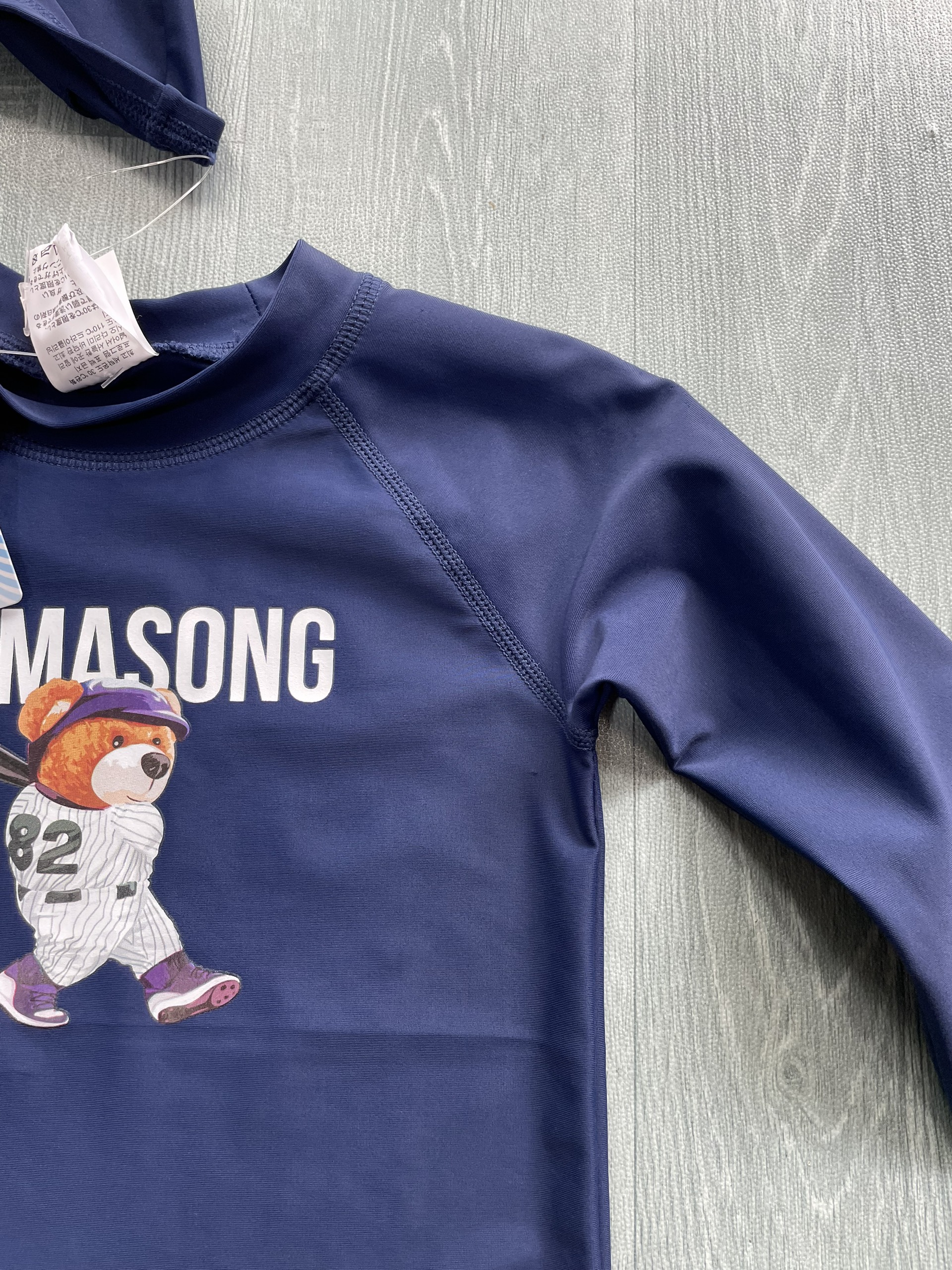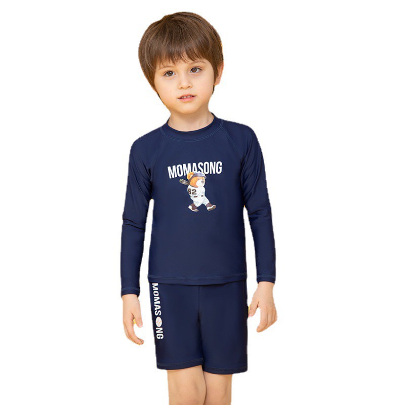 Bộ bơi bé trai dài Xanh Than, hình gấu, quần cộc rời, Momasong (Korea)