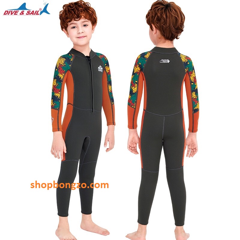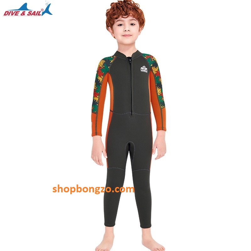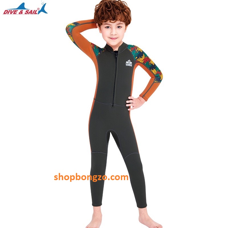 Bộ bơi giữ nhiệt bé trai, dài tay màu xanh vàng, vải dày 2.5mm, Dive Sail