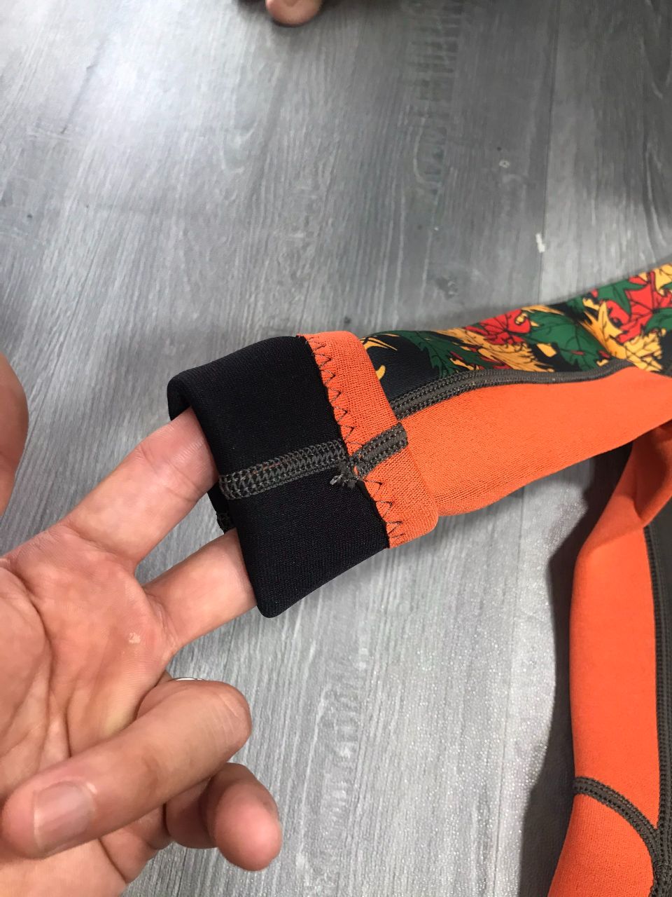 - Chất liệu vải gồm 3 tầng : lớp ngoài cùng vải nylon đàn hồi, lớp giữa là neoprene 2mm, lớp trong bằng vải nylon đàn hồi màu đen