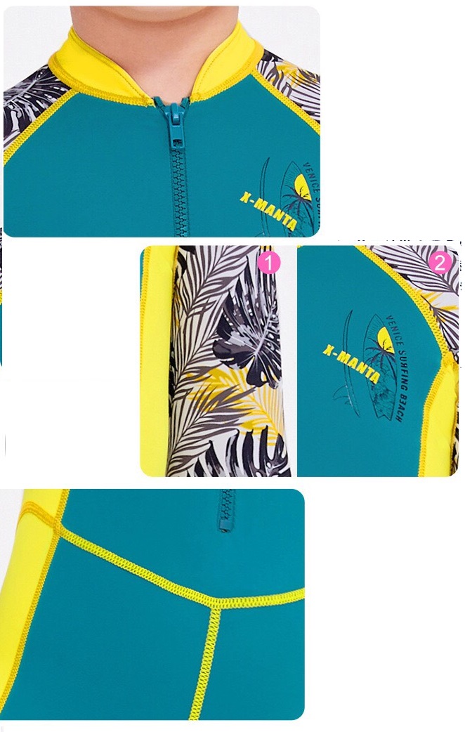 Bộ bơi bé trai chống nắng UPF50+, màu trắng tay vàng, dài tay, Paradise, YUKE