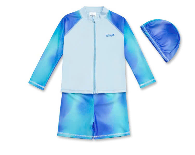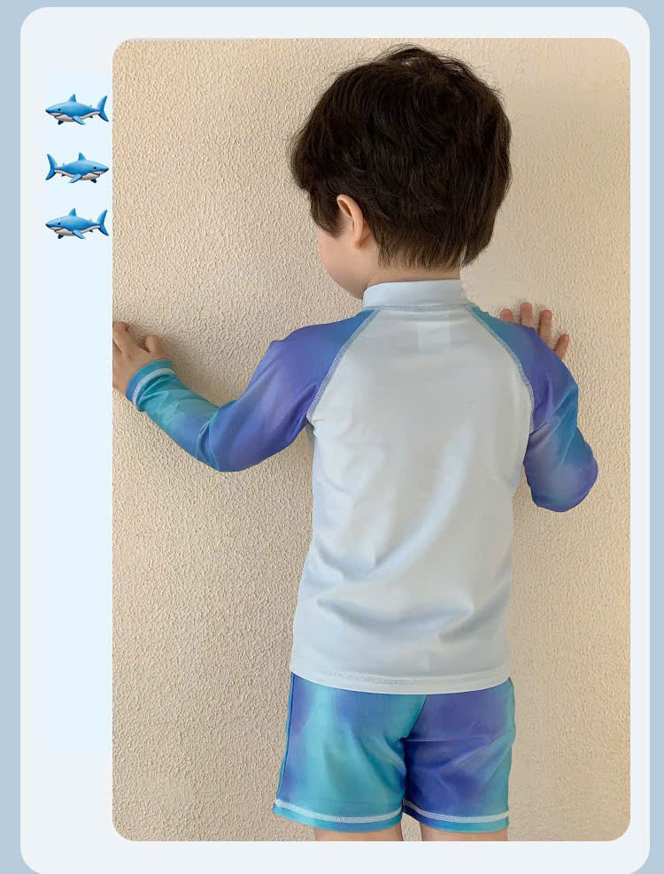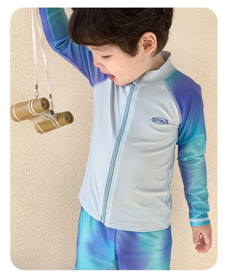Bộ bơi bé trai chống nắng UPF50+, màu xanh, dài tay, Paradise, YUKE