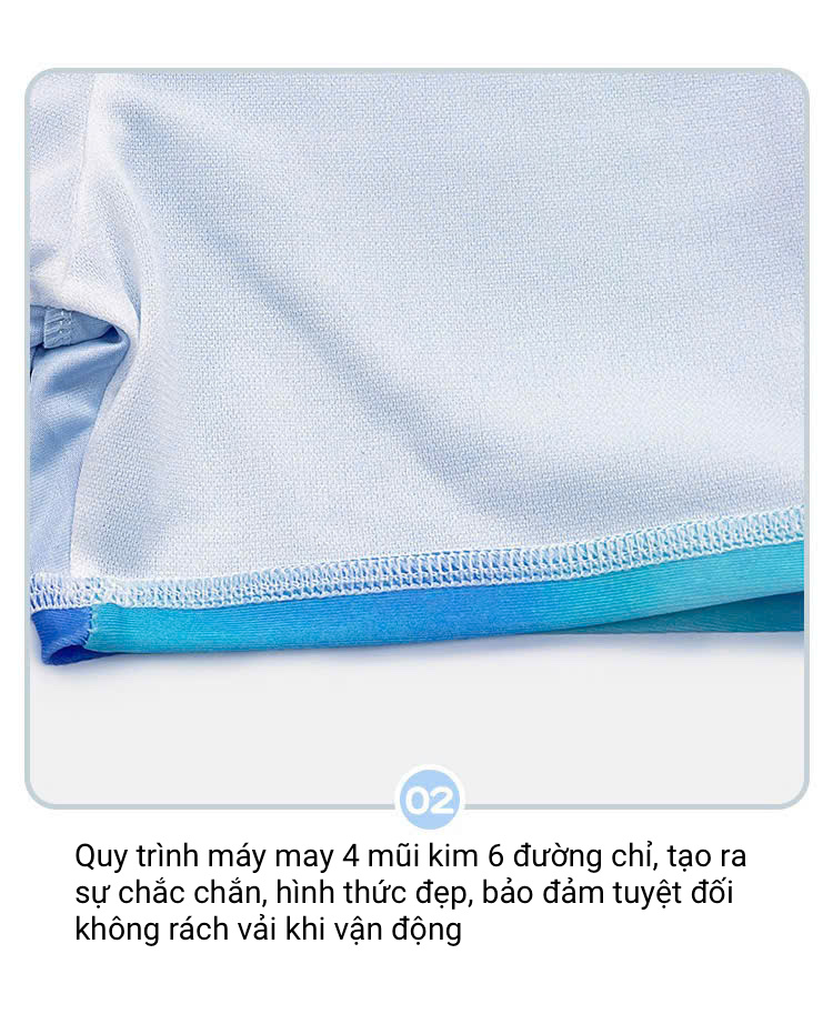 Quy trình máy may 4 mũi kim 6 đường chỉ, tạo ra sự chắc chắn, hình thức đẹp, bảo đảm tuyệt đối không rách vải khi vận động