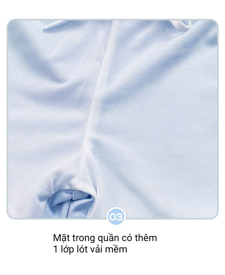 Quần cạp chun co giãn, có dây rút, Đáy quần có lót thêm 1 lớp vải mềm