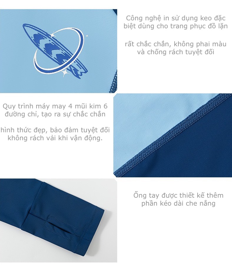 Bộ bơi bảo vệ da khỏi ánh nắng & vải mau khô chống lạnh.