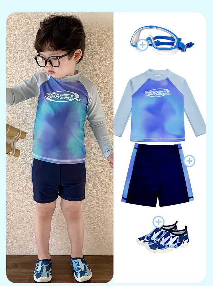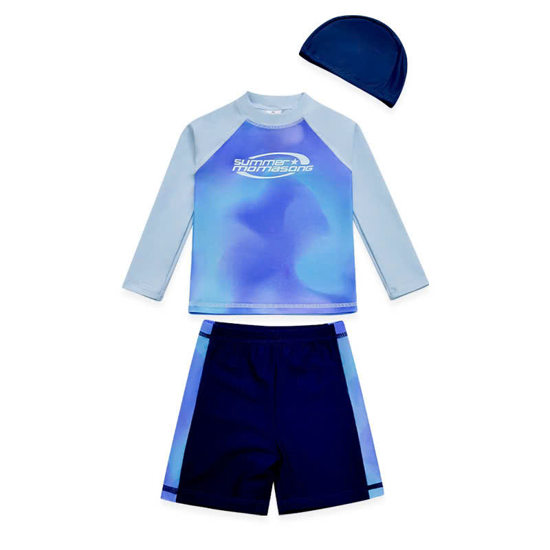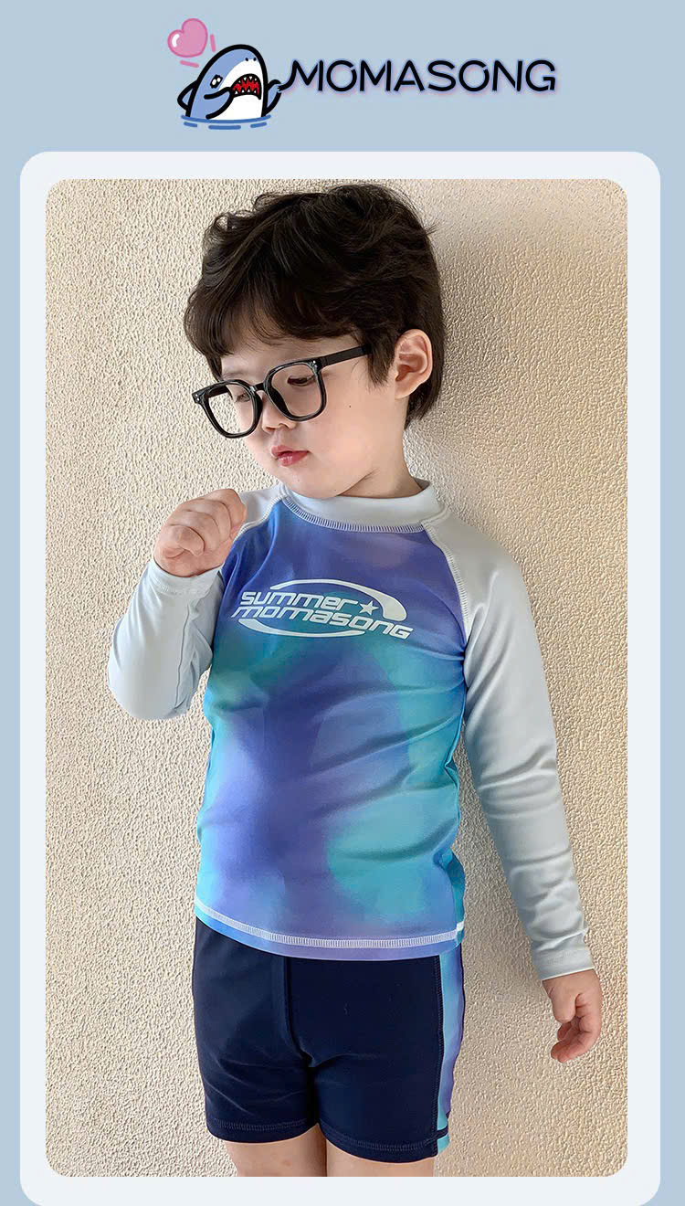 Bộ bơi bé trai chống nắng UPF50+, màu xanh, dài tay, Paradise, YUKE
