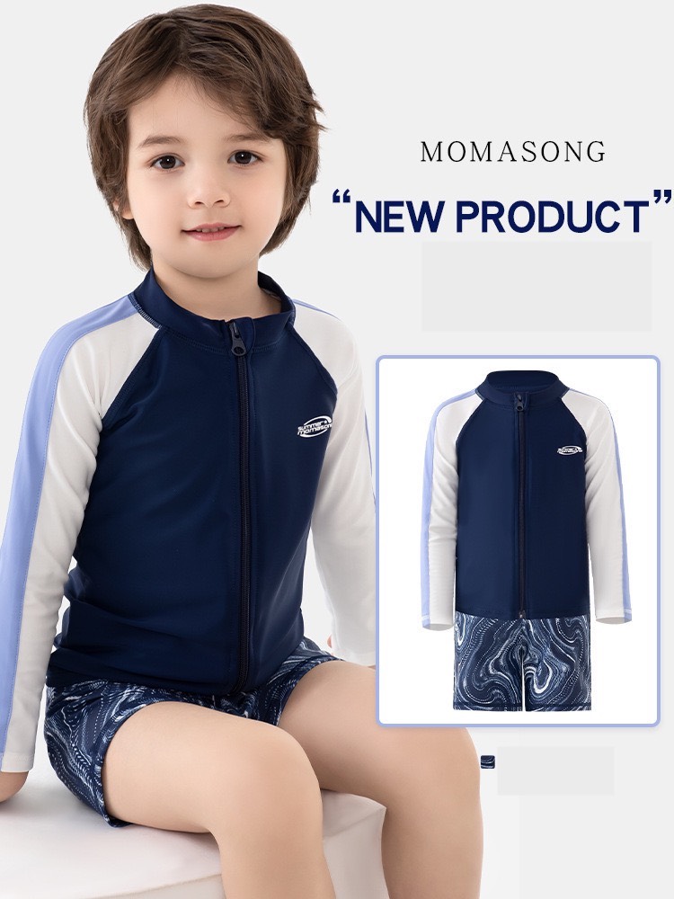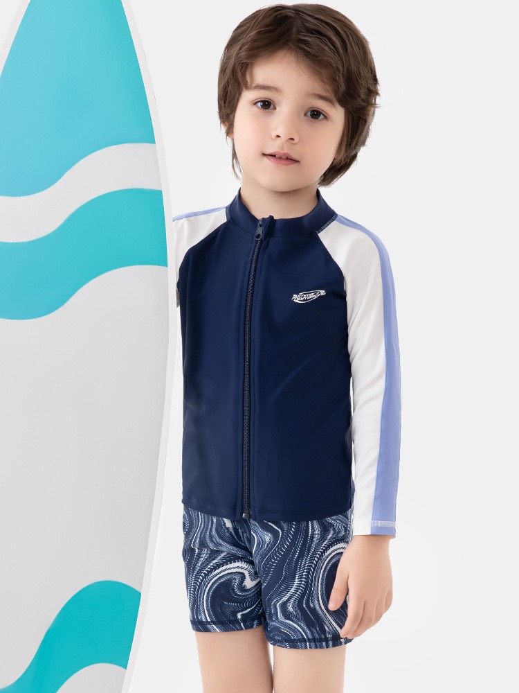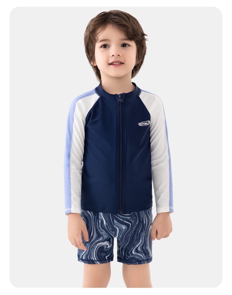 Bộ bơi bé trai chống nắng UPF50+, màu xanh, dài tay, Paradise, YUKE