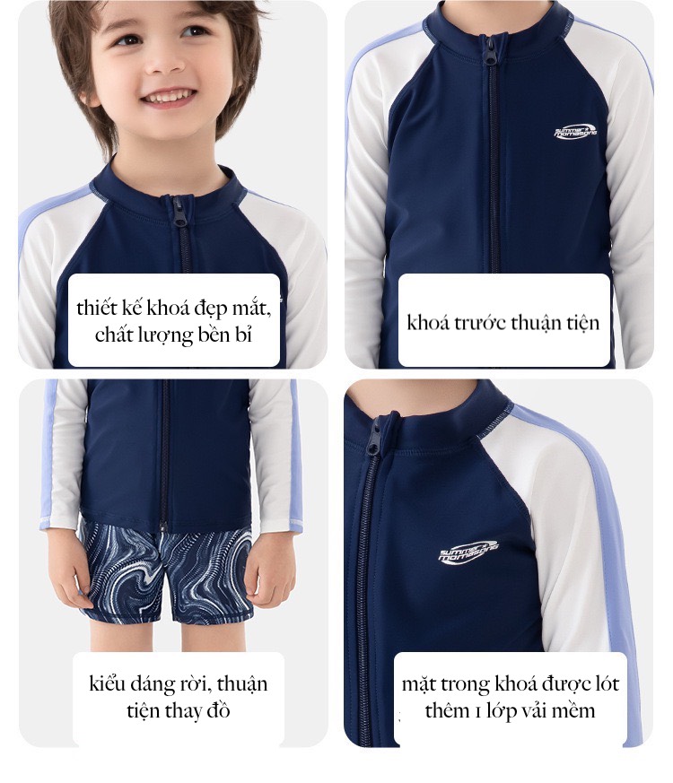 Bộ bơi bảo vệ da khỏi ánh nắng & vải mau khô chống lạnh.