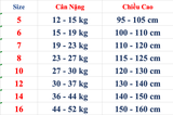 Size 5 (12-15kg)(95-105cm) 6 (15-19kg) (100-110cm) 7 (19-23kg) (105-115cm)
