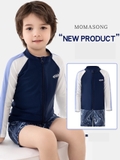 Bộ bơi chống nắng dài xanh than, tay trắng, kéo khoá, Momasong