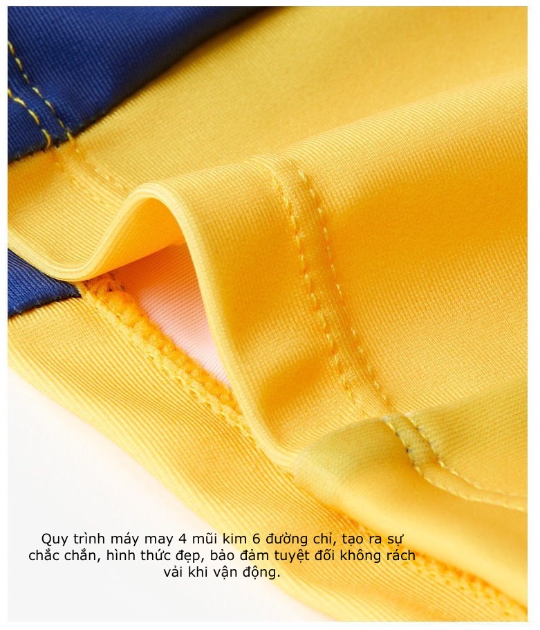 + Quy trình máy may 4 mũi kim 6 đường chỉ, tạo ra sự chắc chắn, hình thức đẹp, bảo đảm tuyệt đối không rách vải khi vận động.