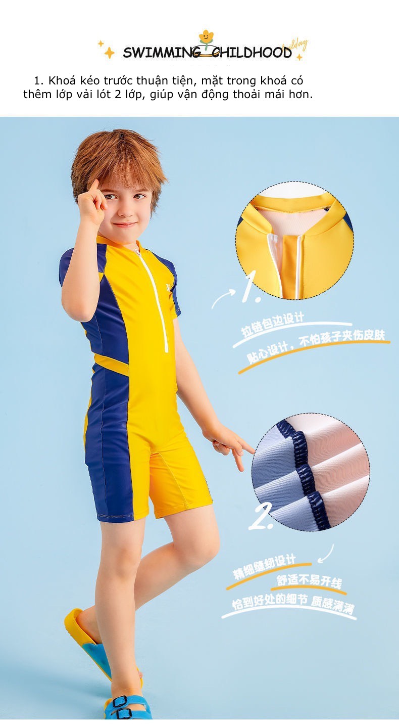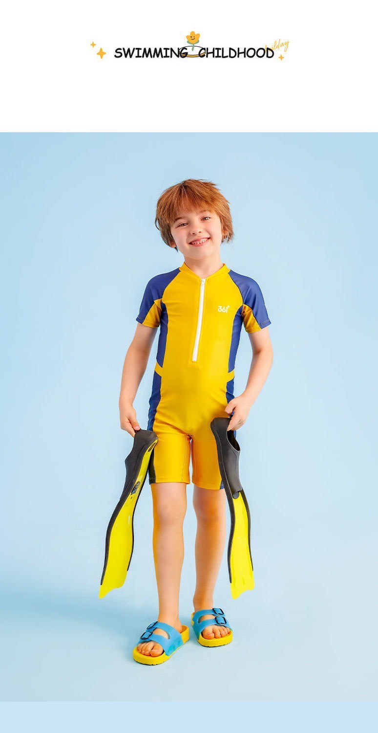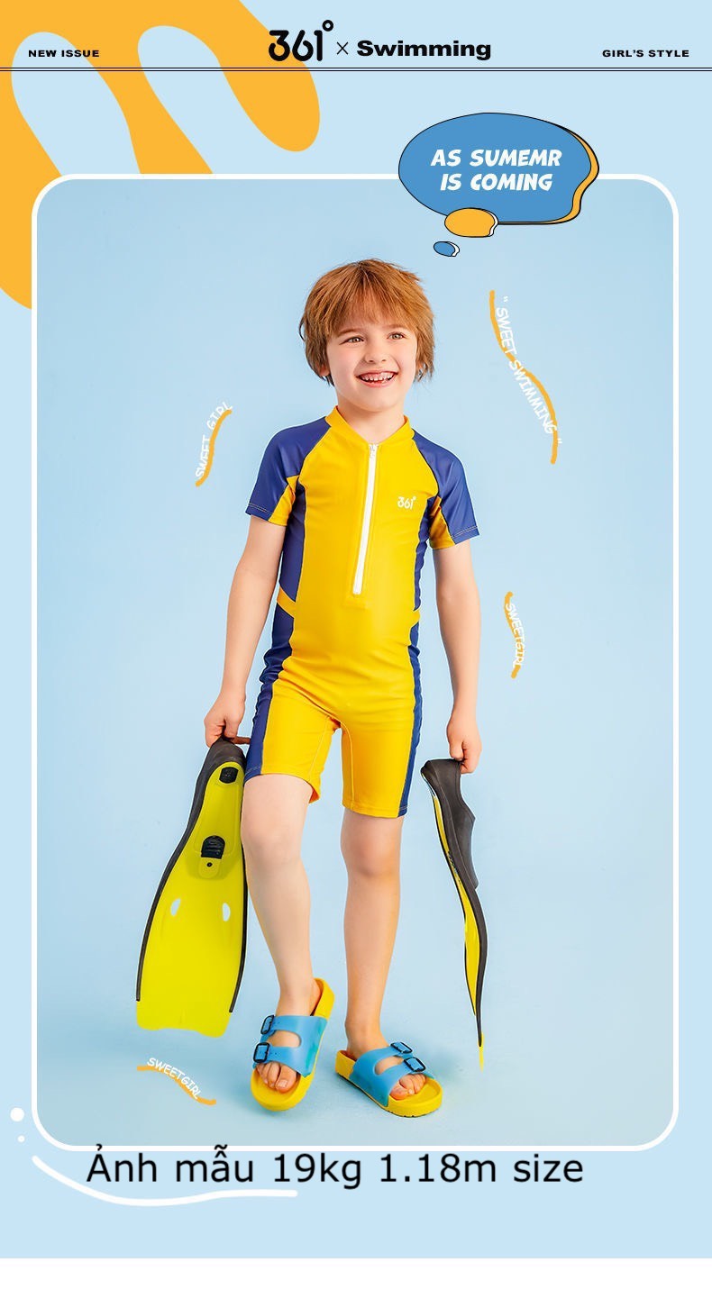 Bộ bơi chống nắng màu vàng, dáng liền, chính hãng 361