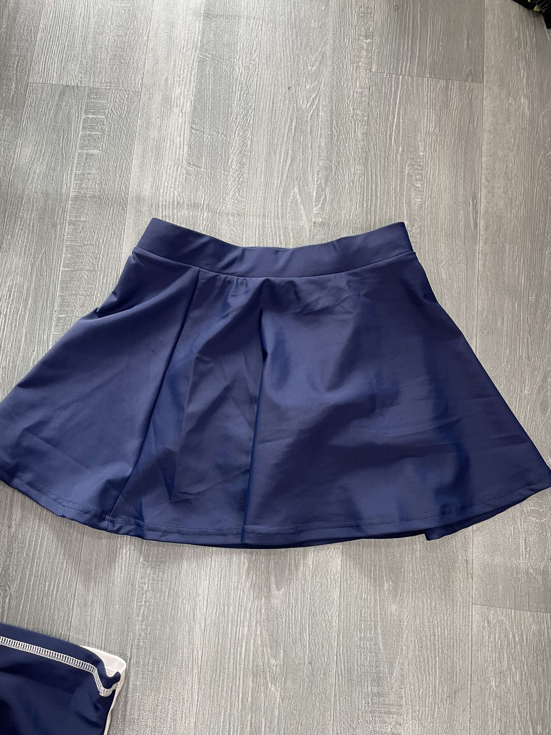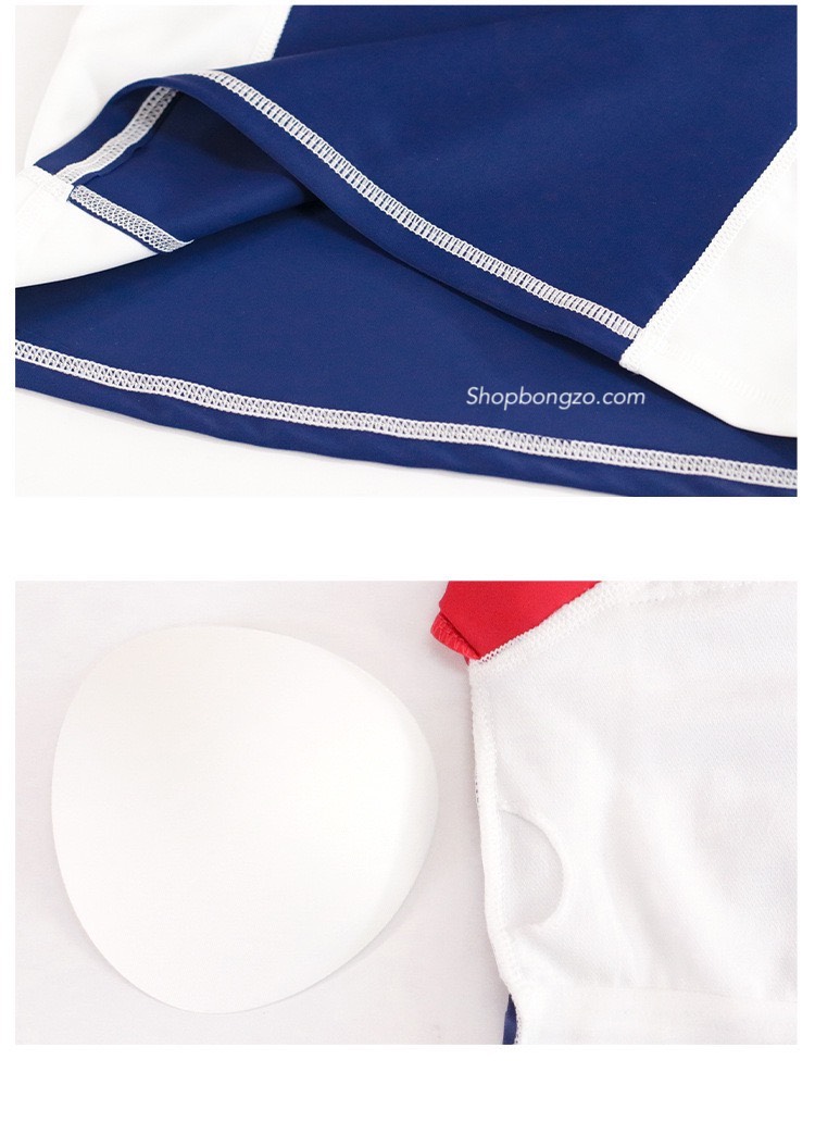 - Kiểu dáng : dáng rời, áo cộc, chân váy liền quần bơi dáng đùi bên trong. Áo có lót ngực bên trong, có thể dễ dàng tháo rời khi giặt bộ bơi.