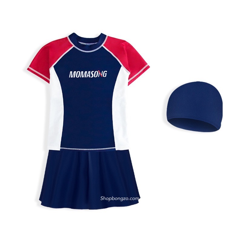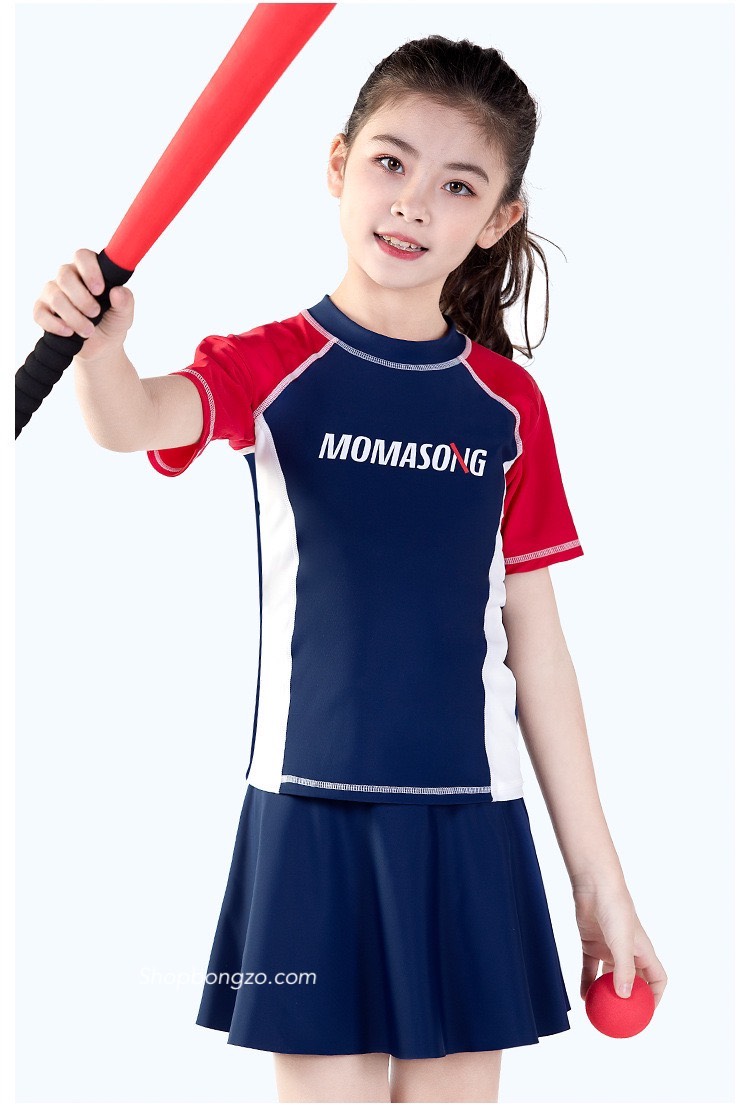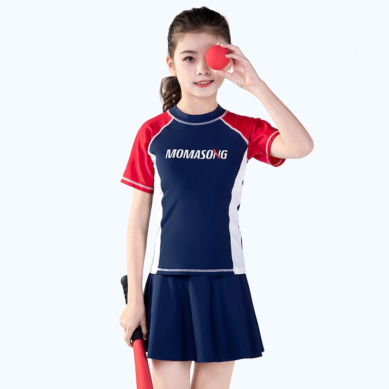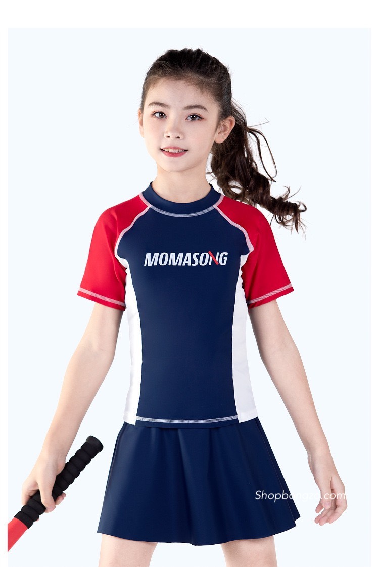 Bộ bơi cộc bé gái hàng cao cấp, vải chống nắng, dáng cộc rời chân váy, màu xanh than đỏ 907096