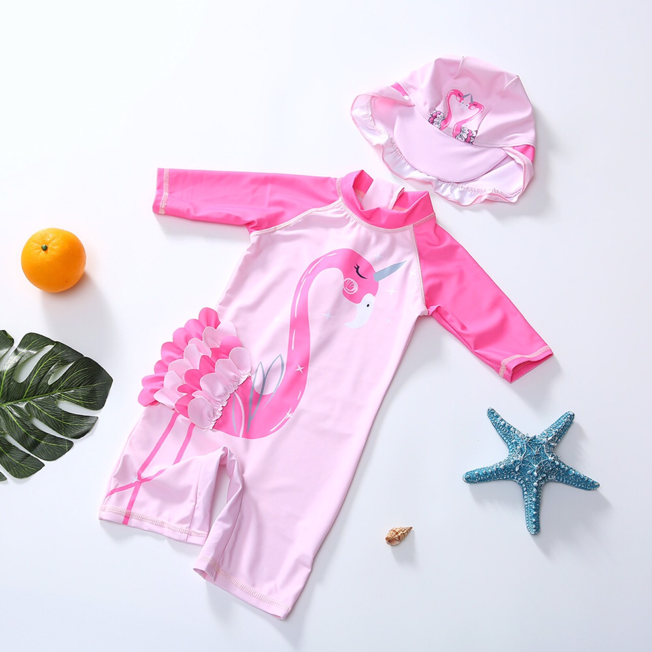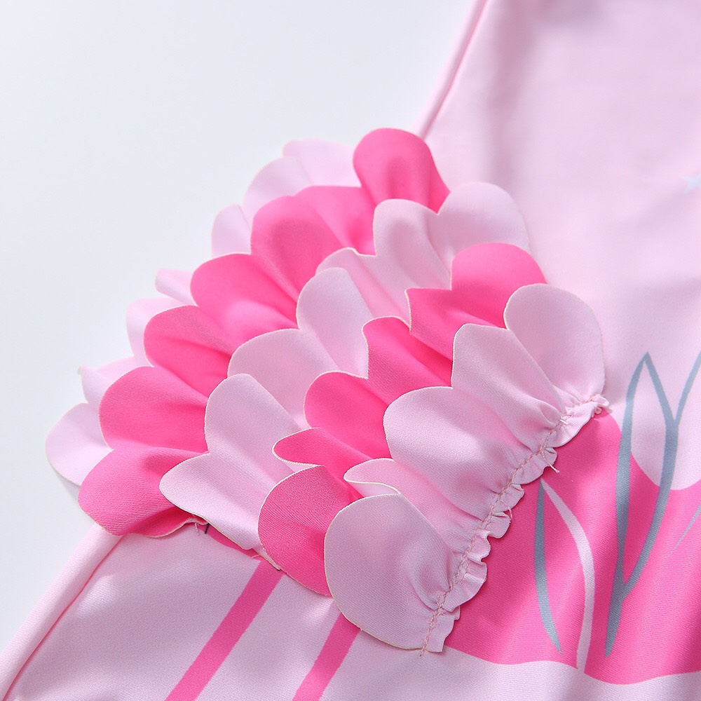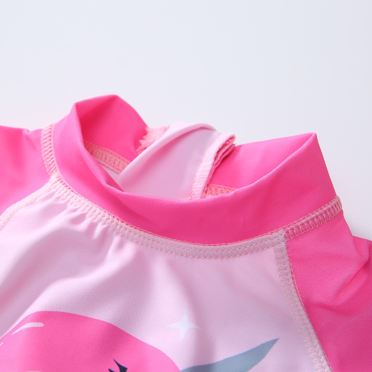 Bộ bơi bé gái cộc tay, màu hồng, vải cao cấp chống nắng UPF 50+, kháng Clo