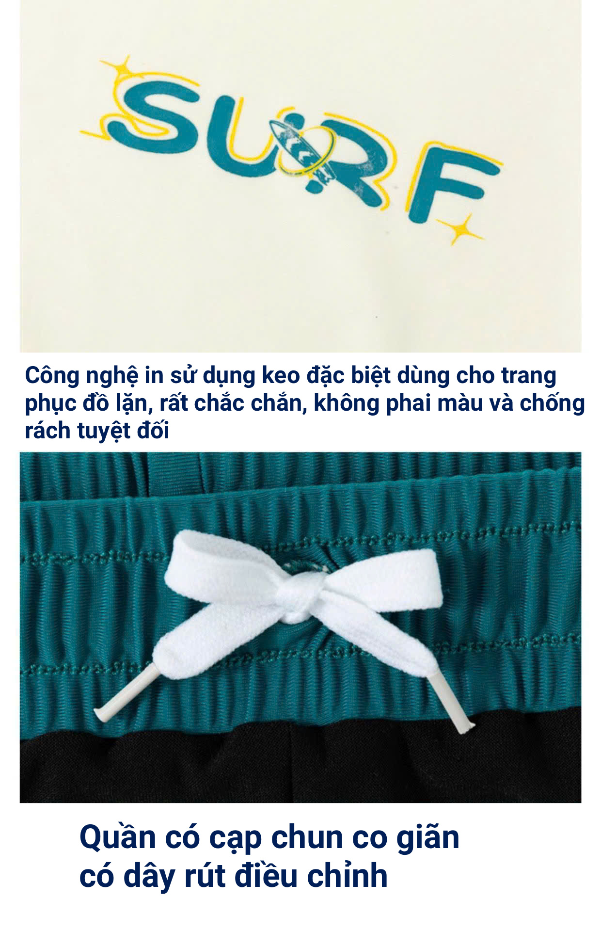 Công nghệ in sử dụng keo đặc biệt dùng cho trang phục đồ lặn, rất chắc chắn, không phai màu và chống rách tuyệt đối