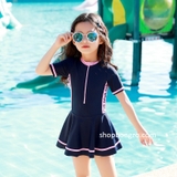 - Kiểu dáng : cộc tay, liền chân váy, kèm quần bơi đùi rời