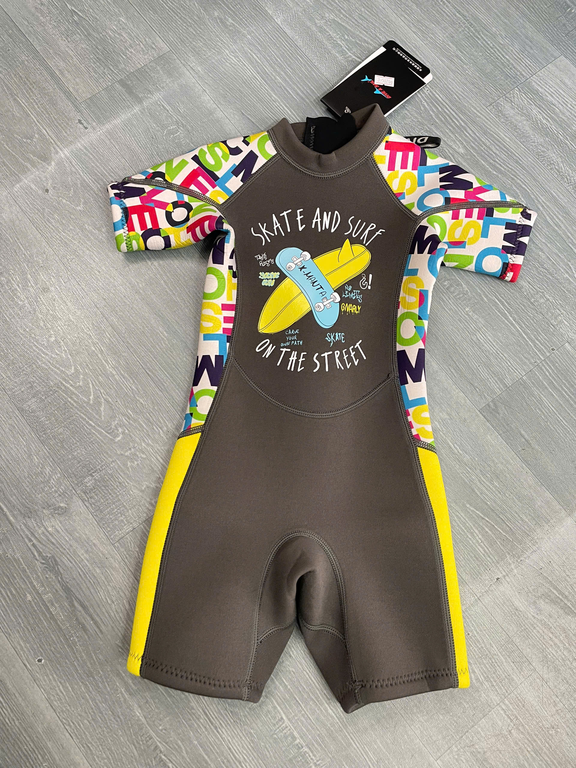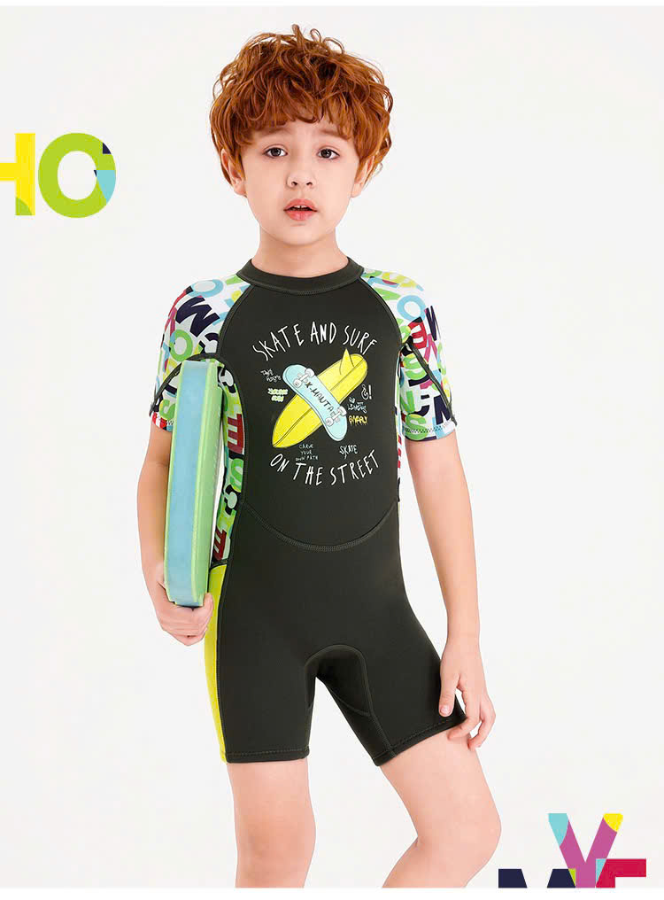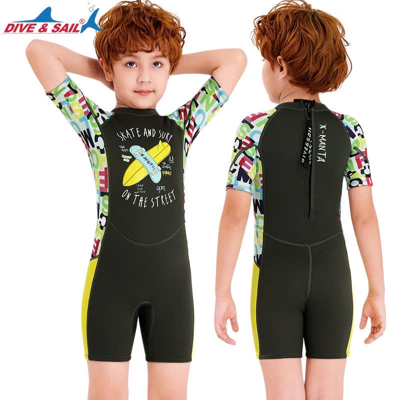 Bộ bơi giữ nhiệt cộc tay, màu xanh hình ván, vải dày 2.5mm, DiveSail