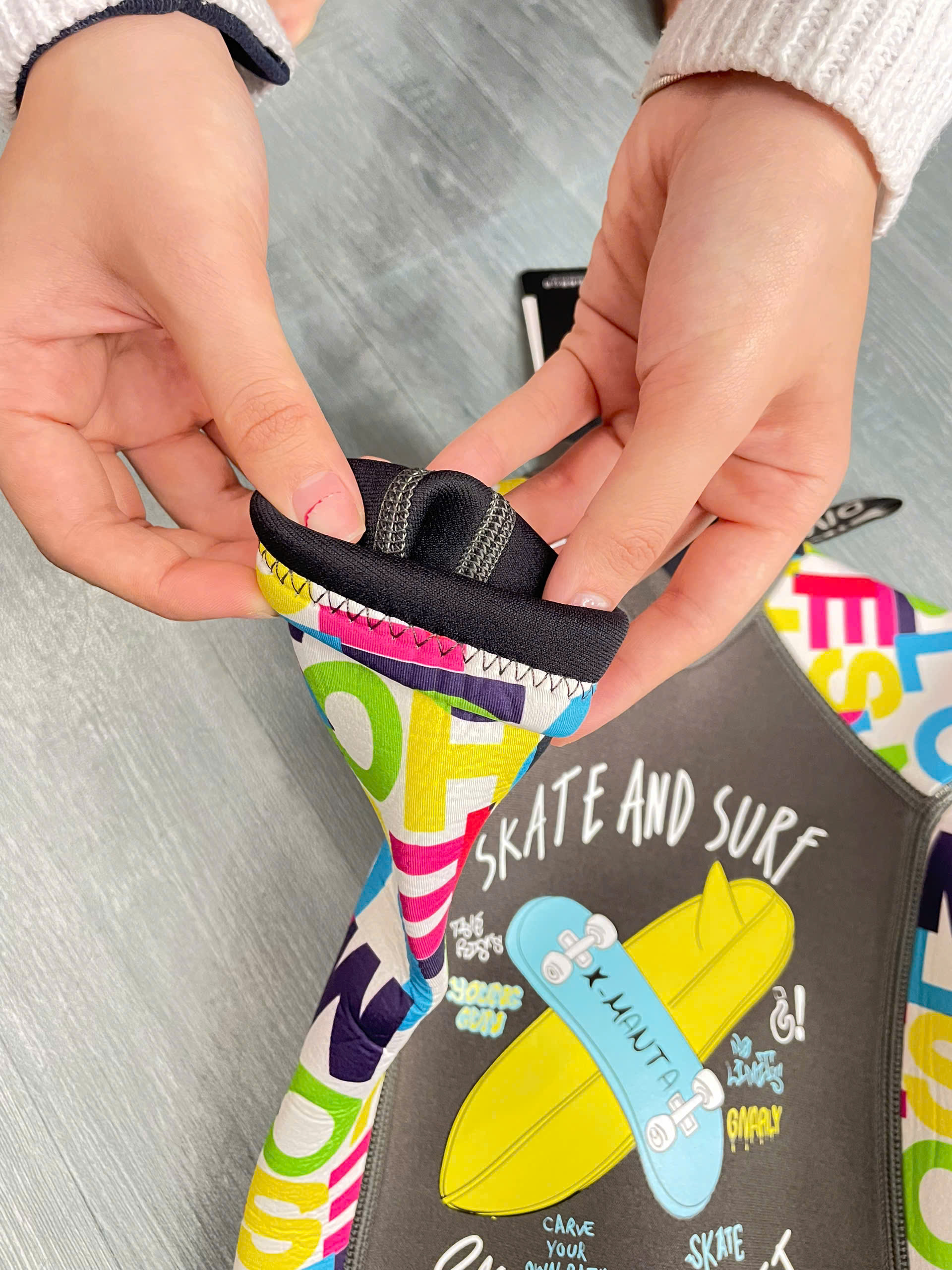 - Công nghệ in sử dụng keo đặc biệt dùng cho trang phục đồ lặn, rất chắc chắn, không phai màu và chống rách tuyệt đối