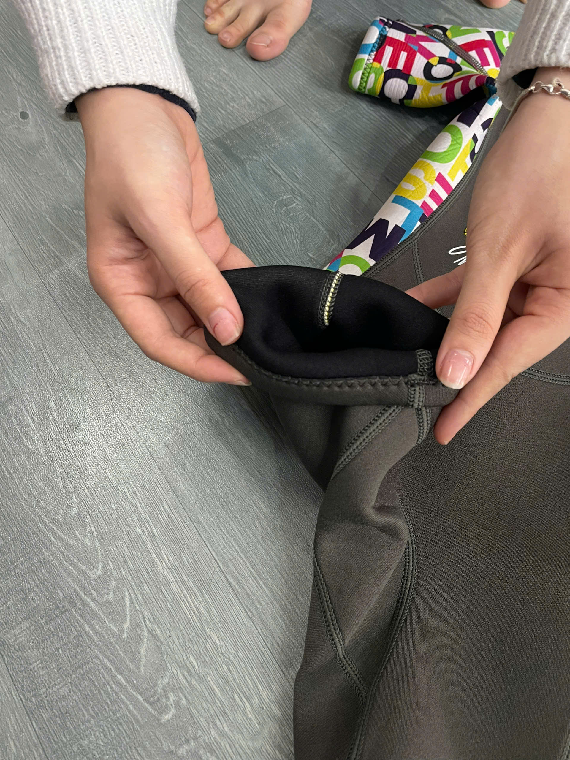 - Bộ bơi giữ nhiệt vải không thấm nước, nên hạn chế tối đa nước tiếp xúc với cơ thể, nhưng không phải 100%, vì có thể nước sẽ vào cơ thể qua kẽ hở như cổ tay, cổ chân. Nhưng có thể yên tâm nước đó sẽ không làm lạnh cơ thể mà còn ngược lại do, chất liệu Wetsuit được làm từ sợi cao su tổng hợp closed - cell neoprene, loại vật liệu này cung cấp chất cách nhiệt rất tốt, chịu được thời tiết thay đổi thất thường, kháng dầu. Điều này đồng nghĩa với việc nước thâm nhập vào bên trong bộ đồ bơi, duy trì như một lớp màng mỏng bao bọc quanh cơ thể, khi đó nhiệt độ bình thường của cơ thể sẽ khiến bạn làm ấm lớp nước này và hỗ trợ bạn cách ly với nước lạnh bên ngoài thông qua wetsuit