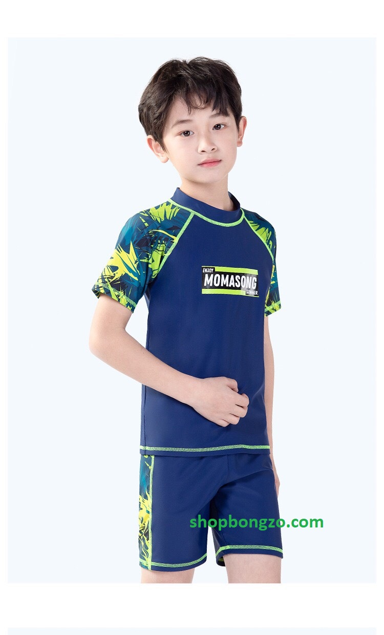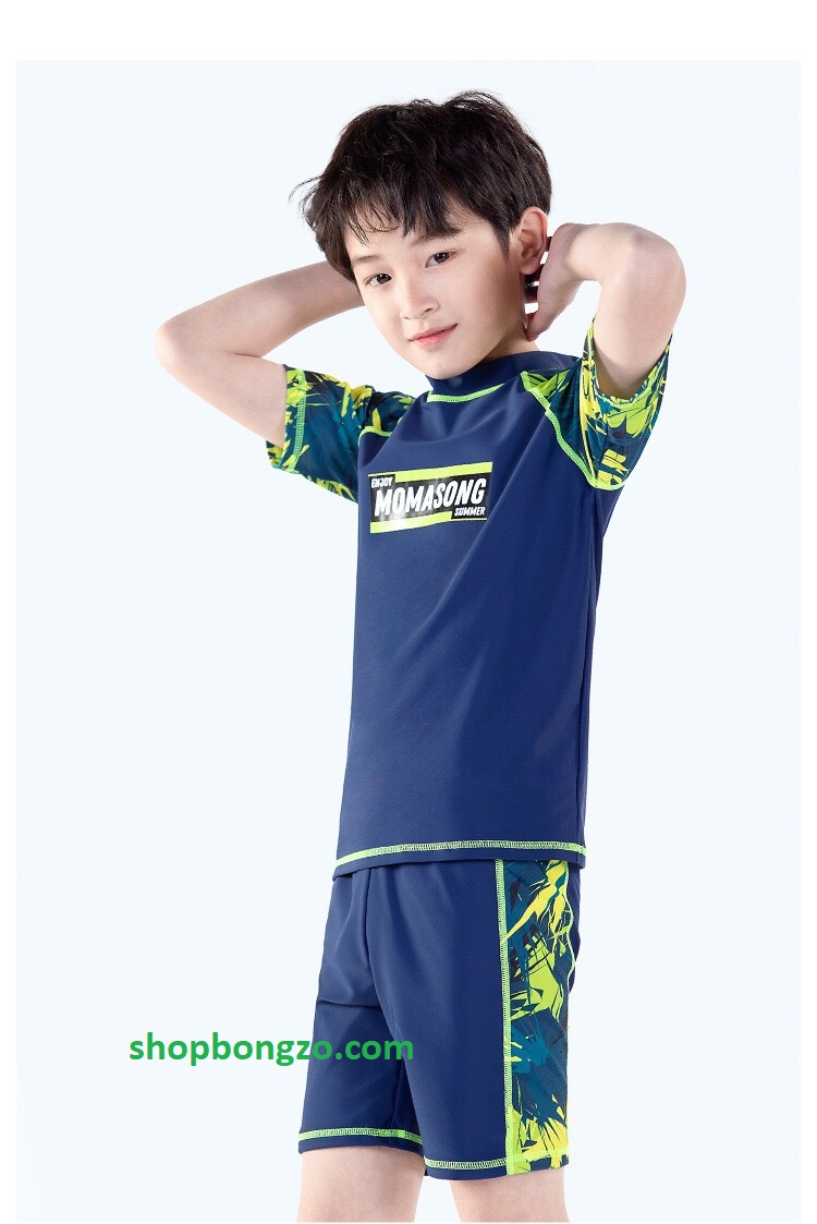Bộ bơi bé trai cộc xanh than, quần rời, Momasong
