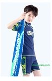Bộ bơi cộc tay bé trai, màu trắng xanh, quần 2 lớp, chống nắng UPF 50+, YUKE