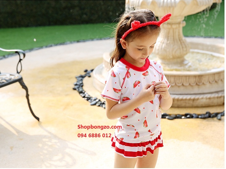 Bộ bơi cộc trắng dưa hấu, chân váy rời
