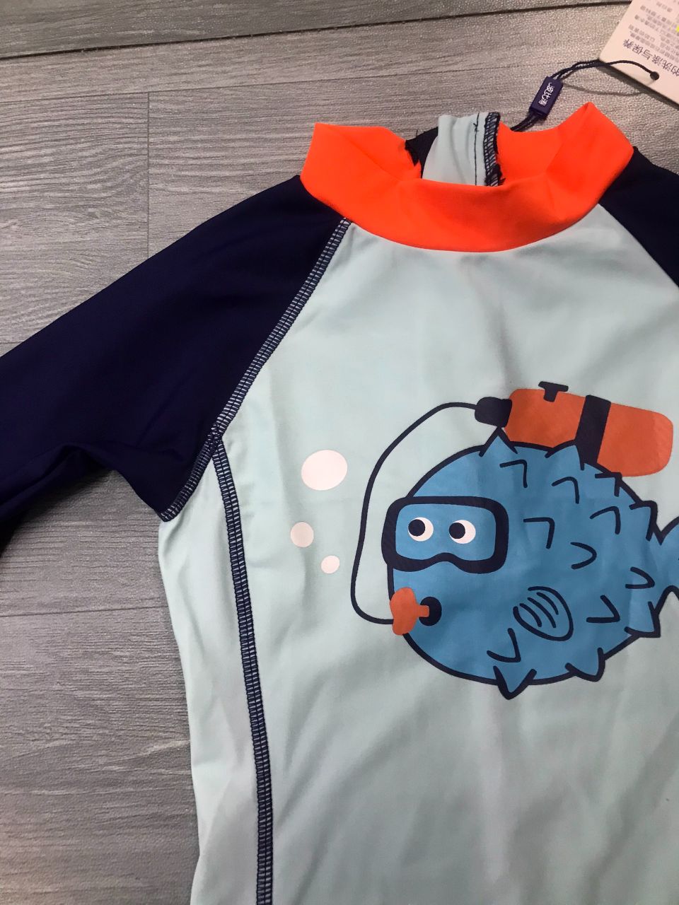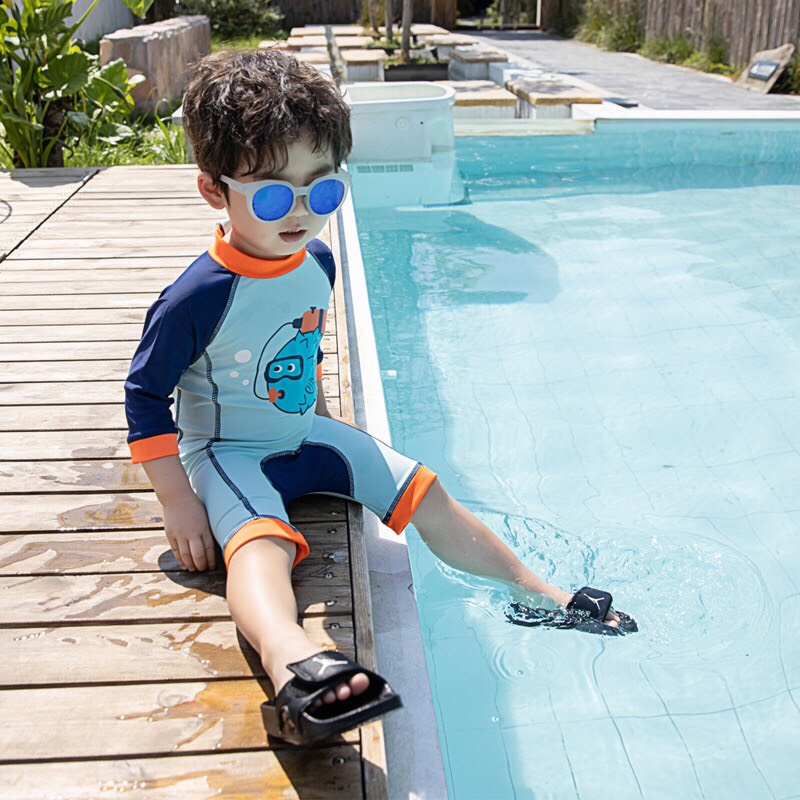 Bộ bơi bé trai chống nắng UPF50+, màu xanh, dài tay, Paradise, YUKE