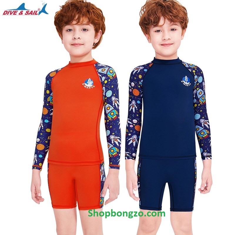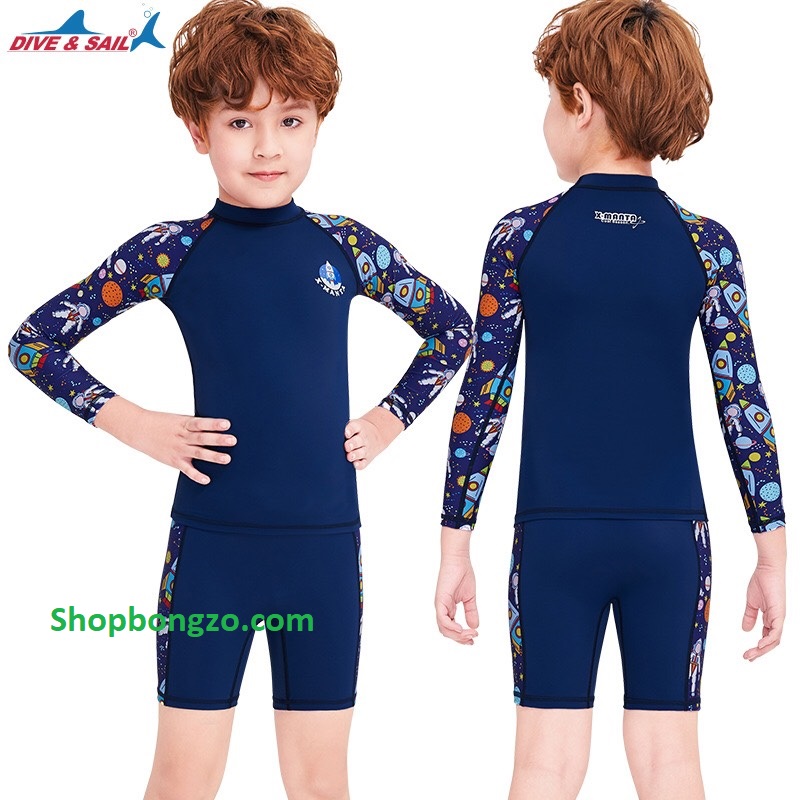 Bộ bơi dài bé trai ,màu THAN, rời quần cộc, tay vũ trụ Dive Sail M150081K