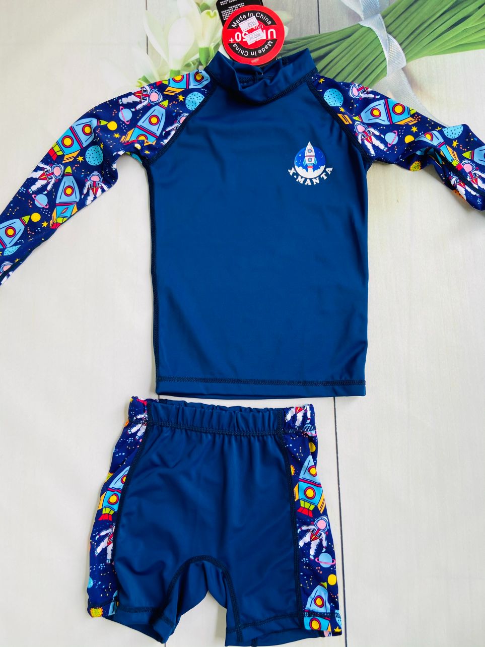 Bộ bơi bé trai chống nắng UPF50+, màu xanh, dài tay, Paradise, YUKE