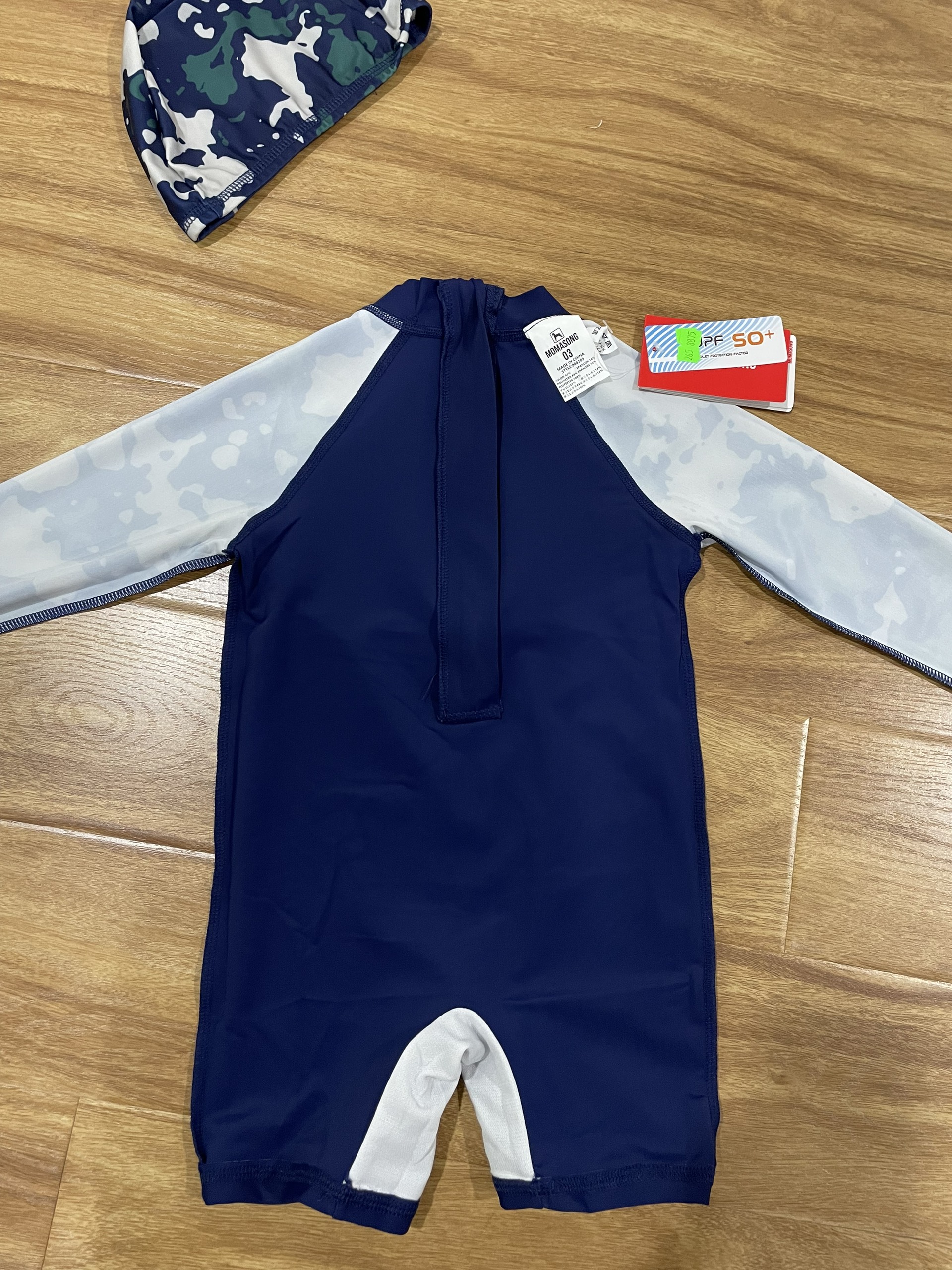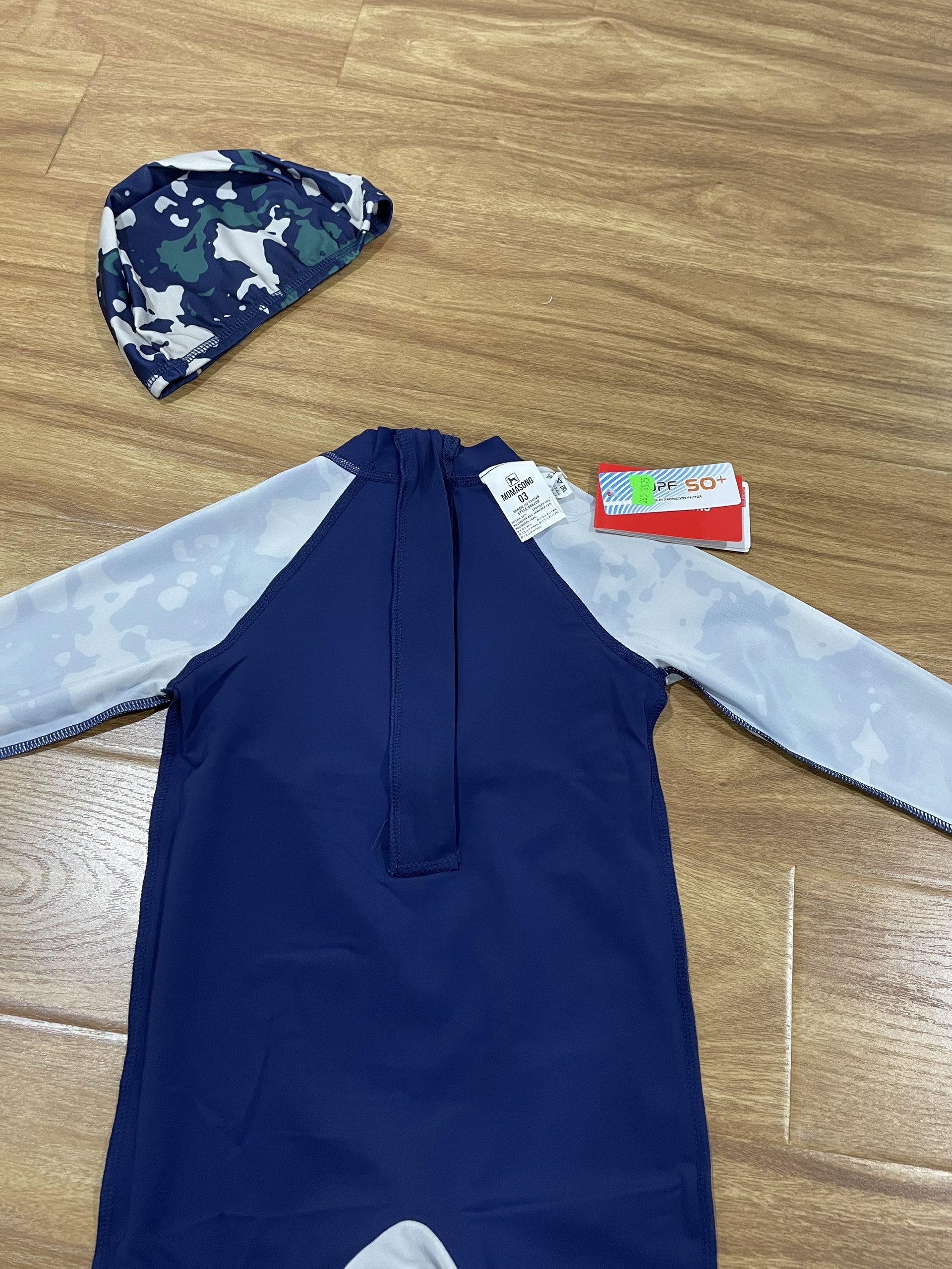Bộ bơi bé trai chống nắng UPF50+, màu xanh, dài tay, Paradise, YUKE