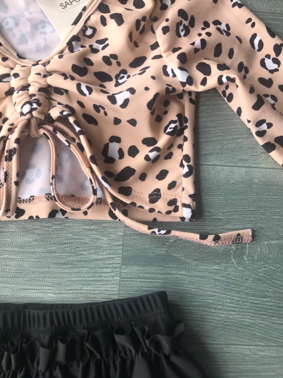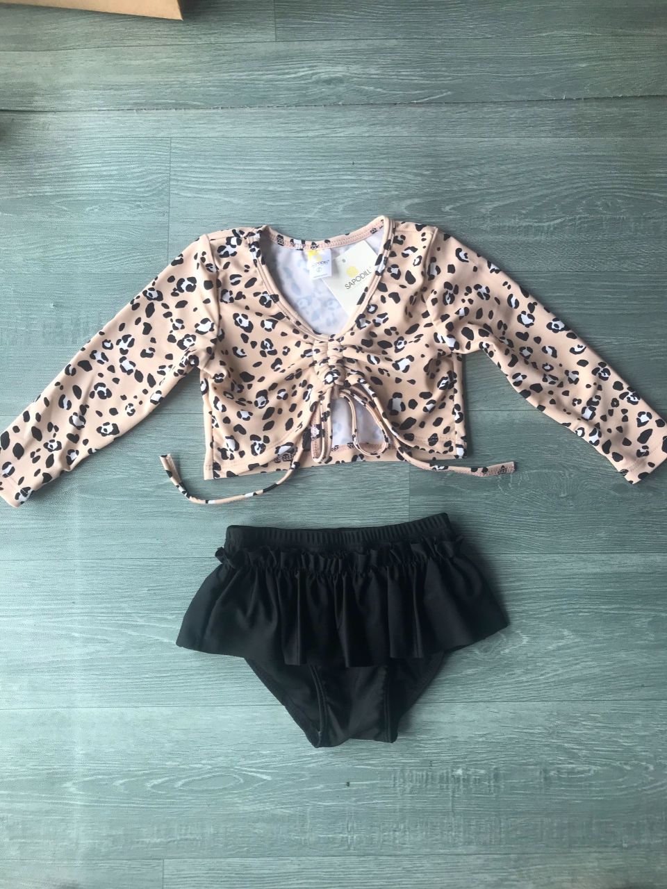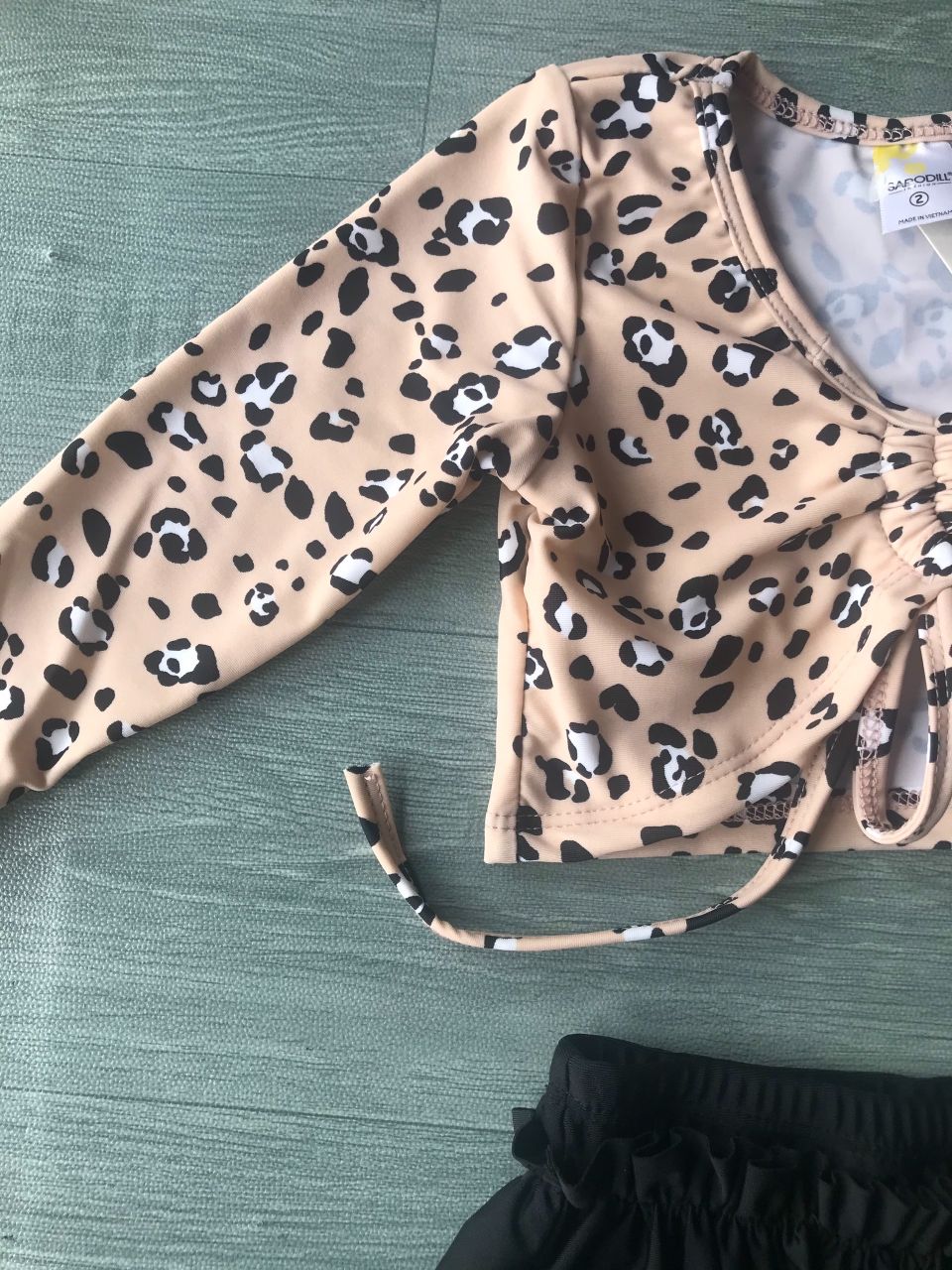 Bộ bơi chống nắng bé gái, dài tay, màu da báo chấm đen