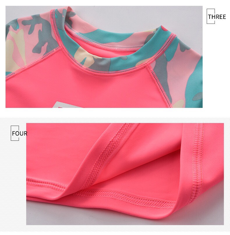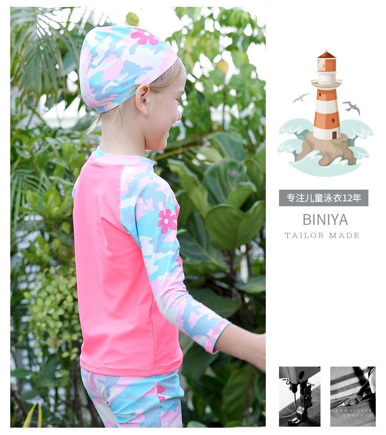 Bộ bơi bé gái dài tay, vải chống nắng UPF 50+ Momasong (Korea), hồng trắng