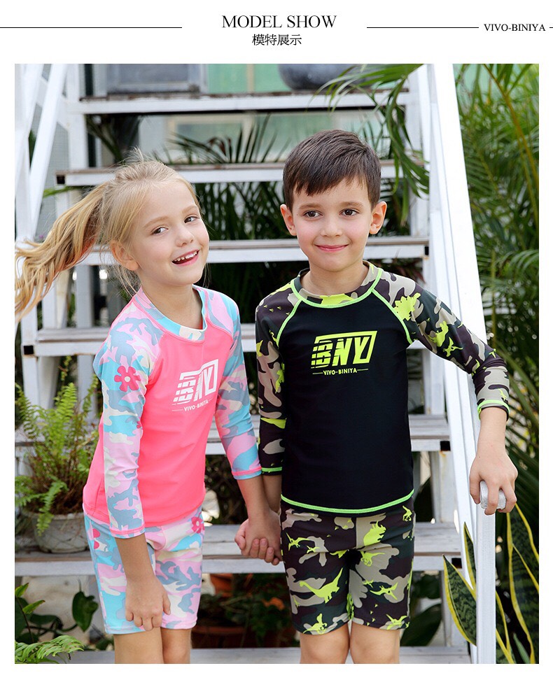 Bộ bơi dài Hồng rằn ri, quần cộc, Vivo Biniya (2-14 tuổi)