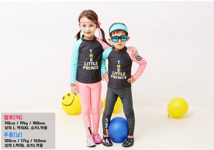 Bộ bơi dài Litte đen, tay xanh hồng, quần dài rời